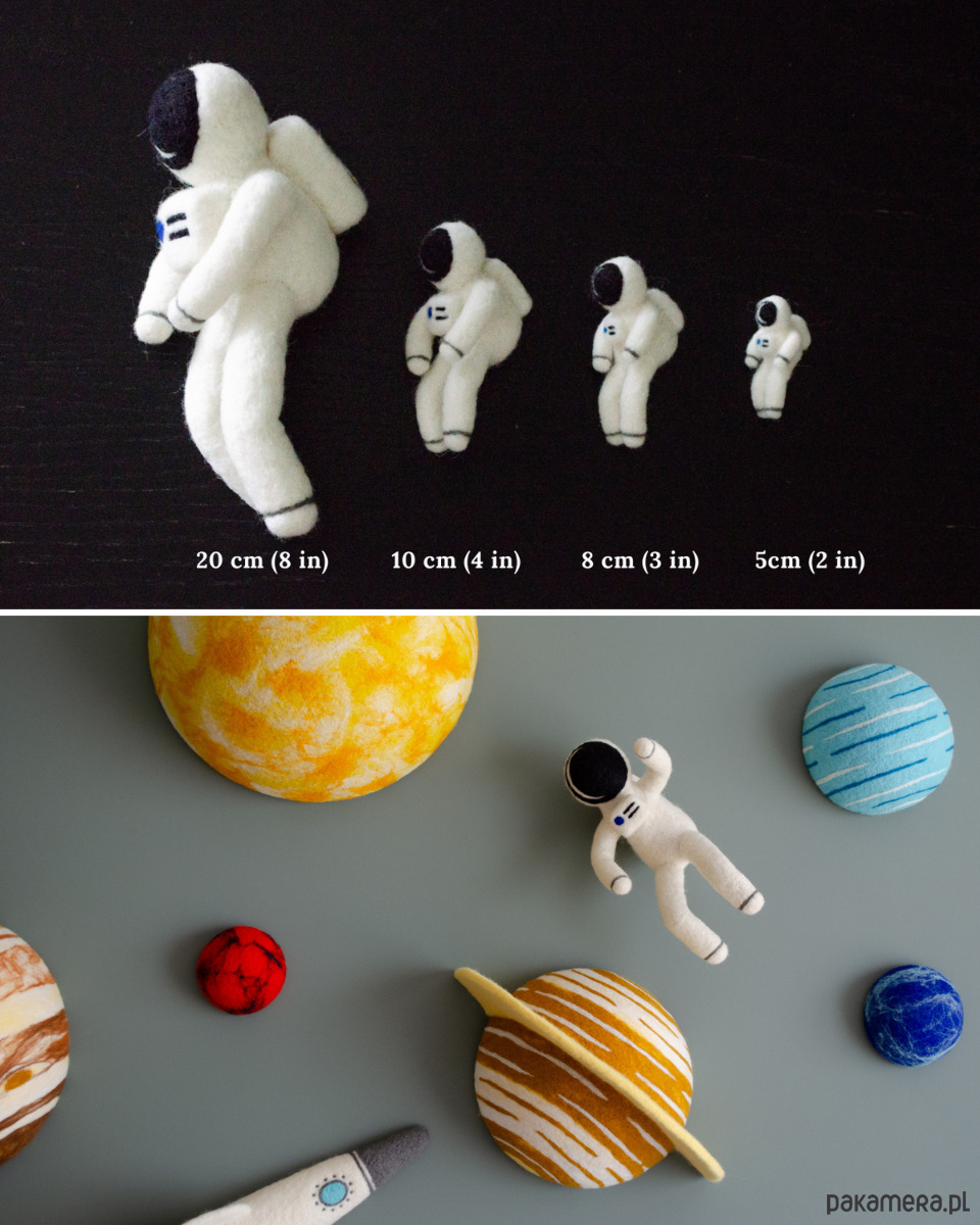 Astronauta z filcu - dekoracja wisząca do pokoju dziecka i zestawu planet