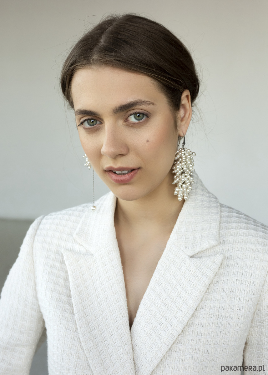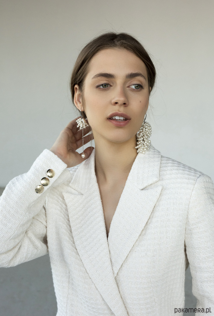 Te perłowe kolczyki przyciągną uwagę każdego! Ich asymetryczna konstrukcja jest ozdobiona gronami szklanych pereł Preciosa w różnych rozmiarach oraz łańcuszkiem ze stali szlachetnej. Ponieważ perły za każdym razem układają się nieco inaczej, nie ma dwóch takich samych par! Każdy egzemplarz jest niepowtarzalny i jedyny w swoim rodzaju. Kolczyki powstały nie tylko po to, aby efektownie rozświetlić Twoje kreacje, ale także z myślą o wygodzie – perły nie "hałasują" przy ruchu, a kolczyk perłowy ma dołączony krótki łańcuszek, który możesz wpiąć wsuwką we włosy, aby zmniejszyć obciążenie ucha. Długość kolczyków to ok. 10cm. Dostępne na bazie w kolorze złota lub srebra.