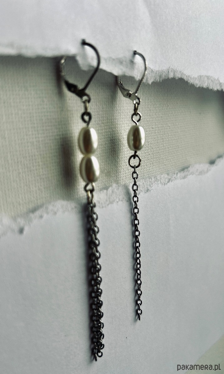 Te kolczyki to kwintesencja modowego szyku z nowoczesnym akcentem. Delikatne perły w połączeniu z subtelnymi łańcuszkami tworzą dynamiczną kompozycję, która harmonijnie podąża za Twoim ruchem.