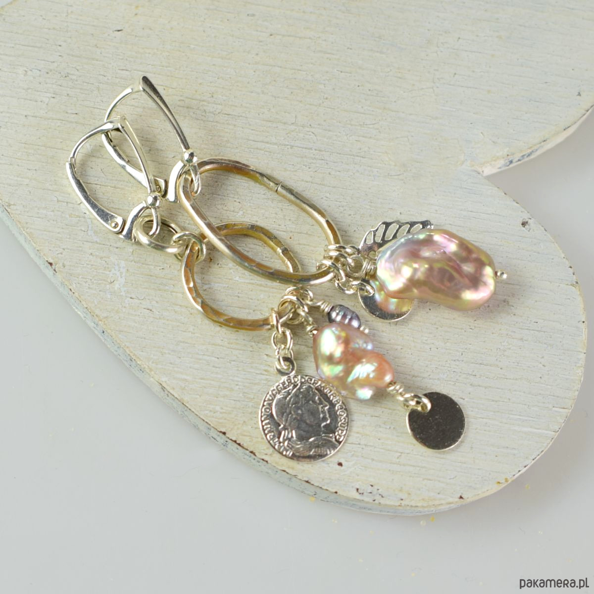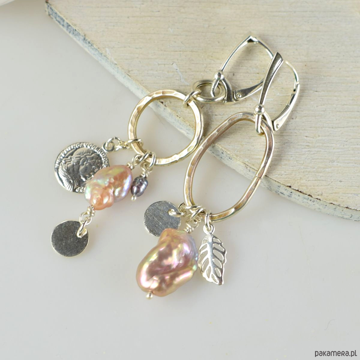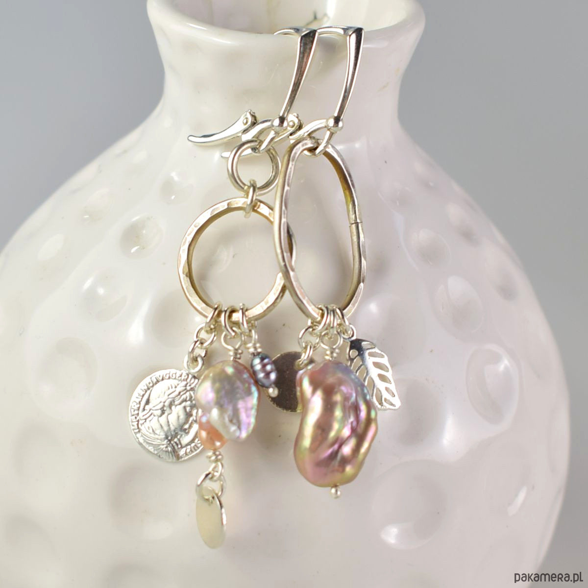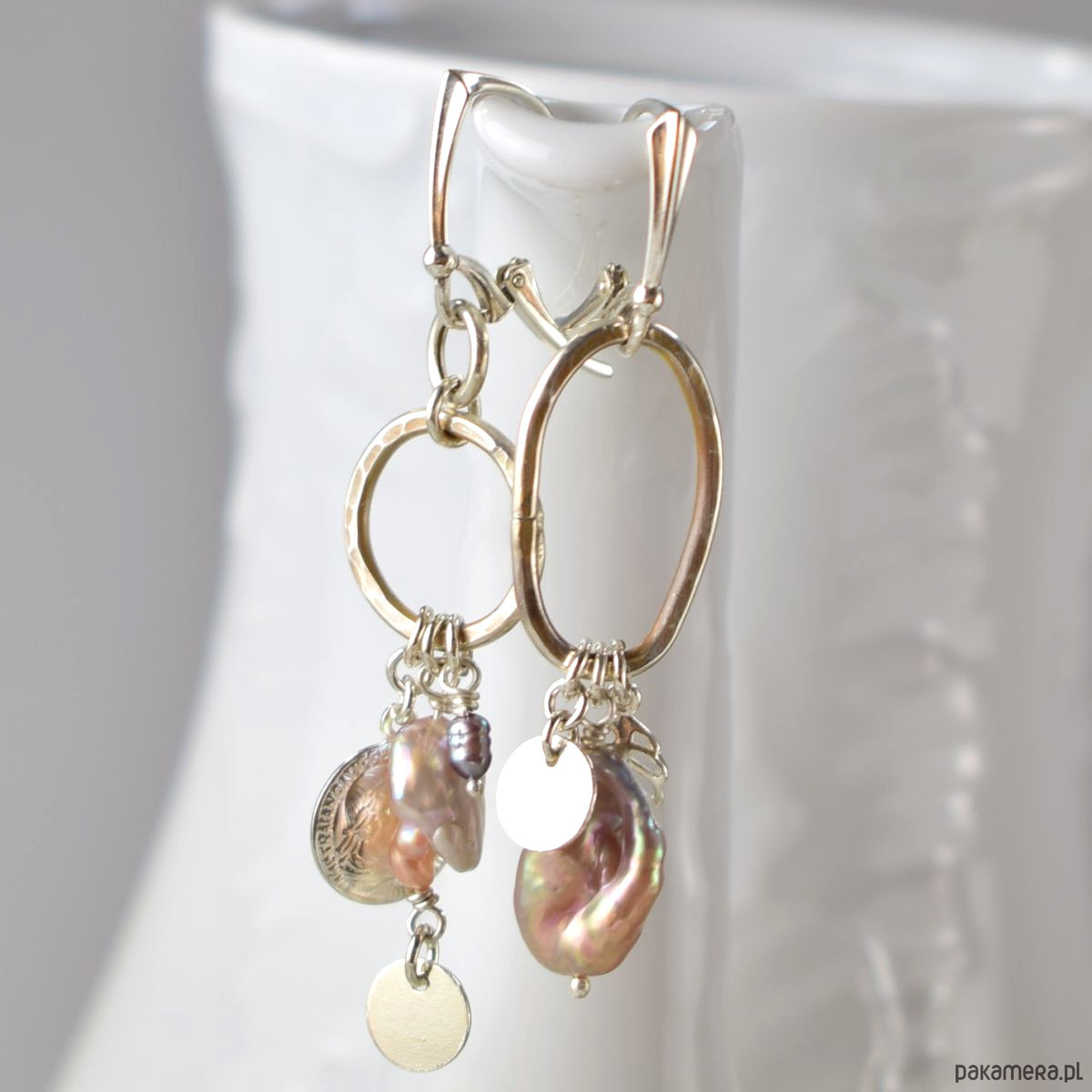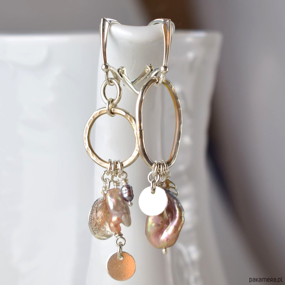 Asymetrycznie - srebrne kolczyki z perłami