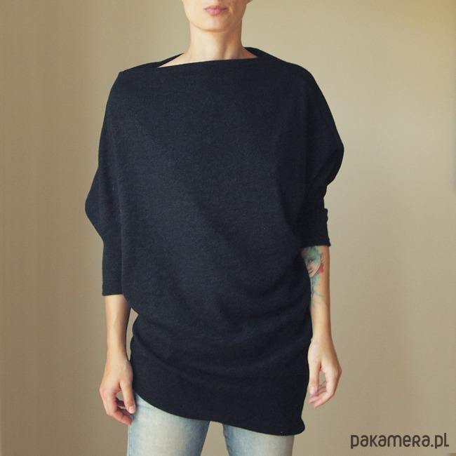 Styl oversize. Jeden rozmiar uniwersalny: szerokość od pachy do pachy mierzona na płasko: około 80cm, długość z dłuższej strony: ok. 100cm, długość z krótszej strony około 75cm.