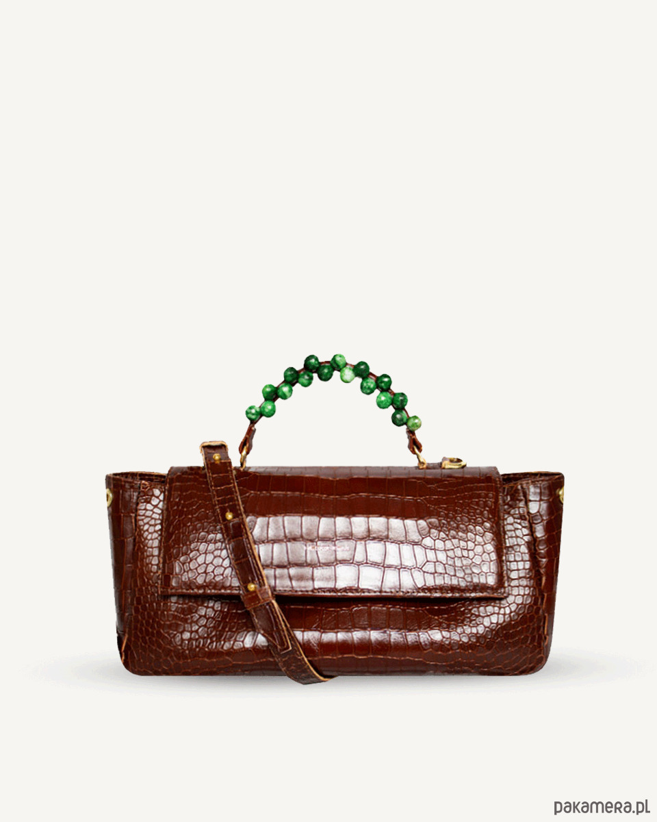 "Audrey Baguette" skóra tłoczona na wzór krokodyla i zielony malachit