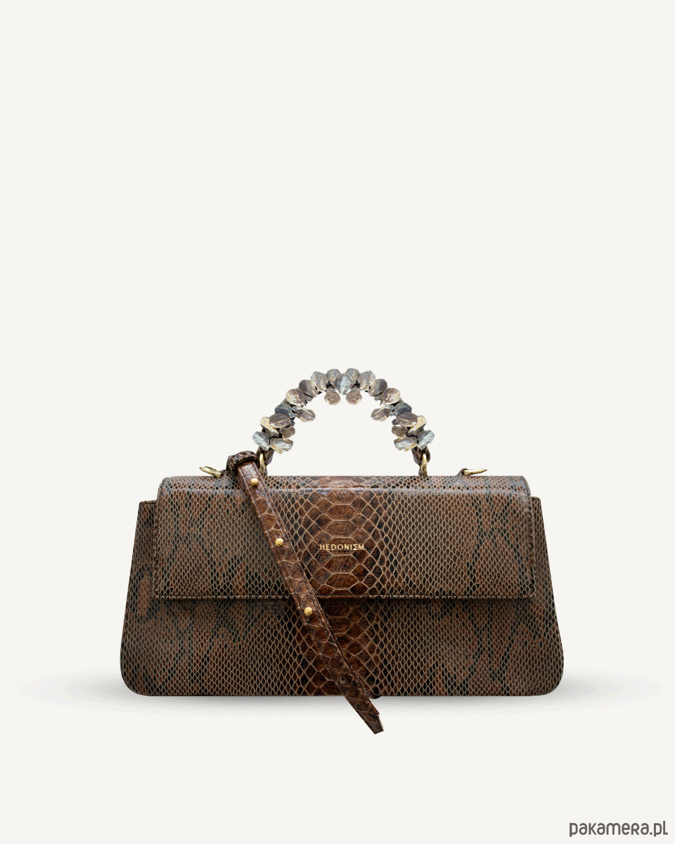 "Audrey Baguette" z perłami słodkowodnymi, skóra wzór węża. Dwa kolory