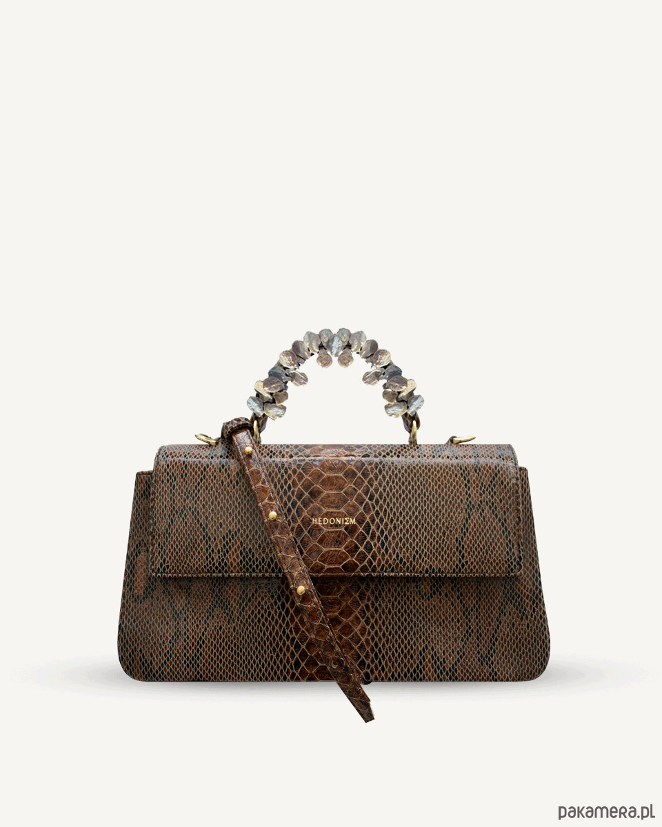 "Audrey M+" torebka z perłami słodkowodnymi, skóra na wzór węża.