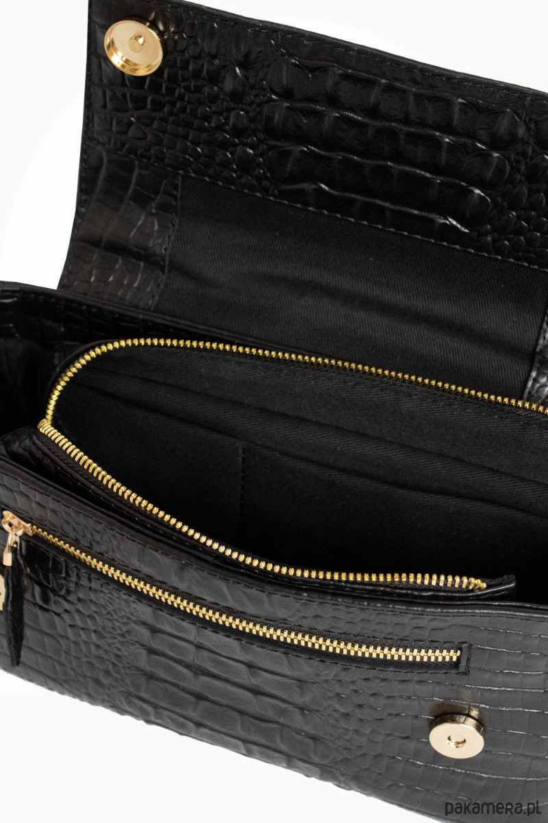 Model dostępny od ręki: złote okucia, czarna materiałowa podszewka.