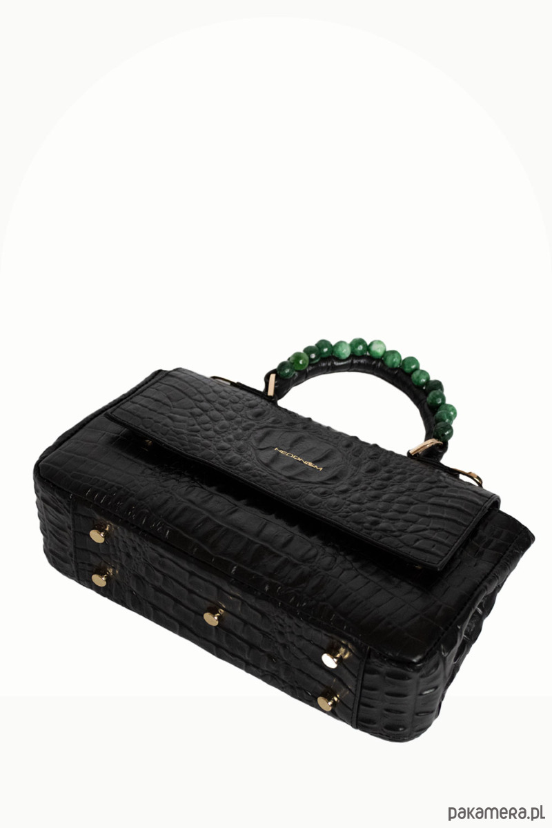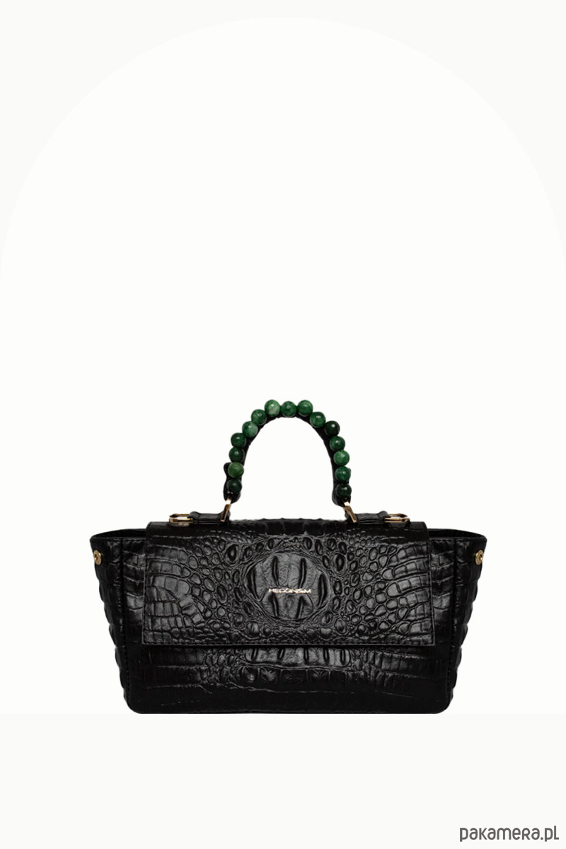 "Audrey" torebka z malachitem, skóra tłoczona na wzór krokodyla