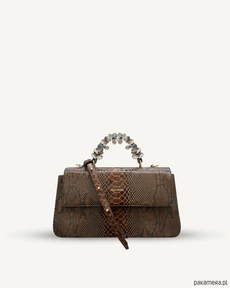 "Audrey" z perłami słodkowodnymi, skóra wzór węża. Dwa kolory