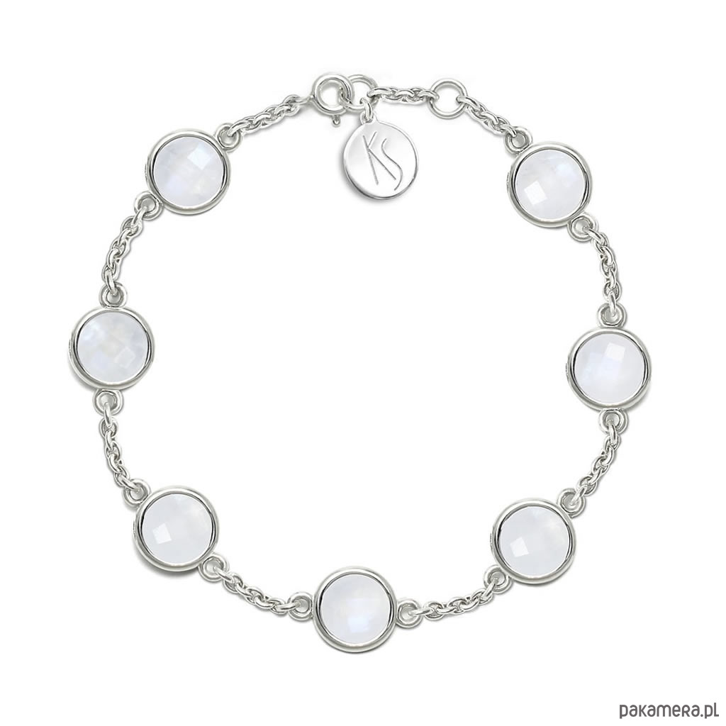 Ta niezwykle efektowna i luksusowa bransoletka wykonana jest ze srebra próby 925 oraz wysokiej klasy kamieni księżycowych o średnicy 7mm. Kamienie odznaczają się wysokim stopniem adularescencji. Zamiast zawieszki z grawerem wysyłamy zawieszkę bez graweru lub z dowolnie wybraną literką.