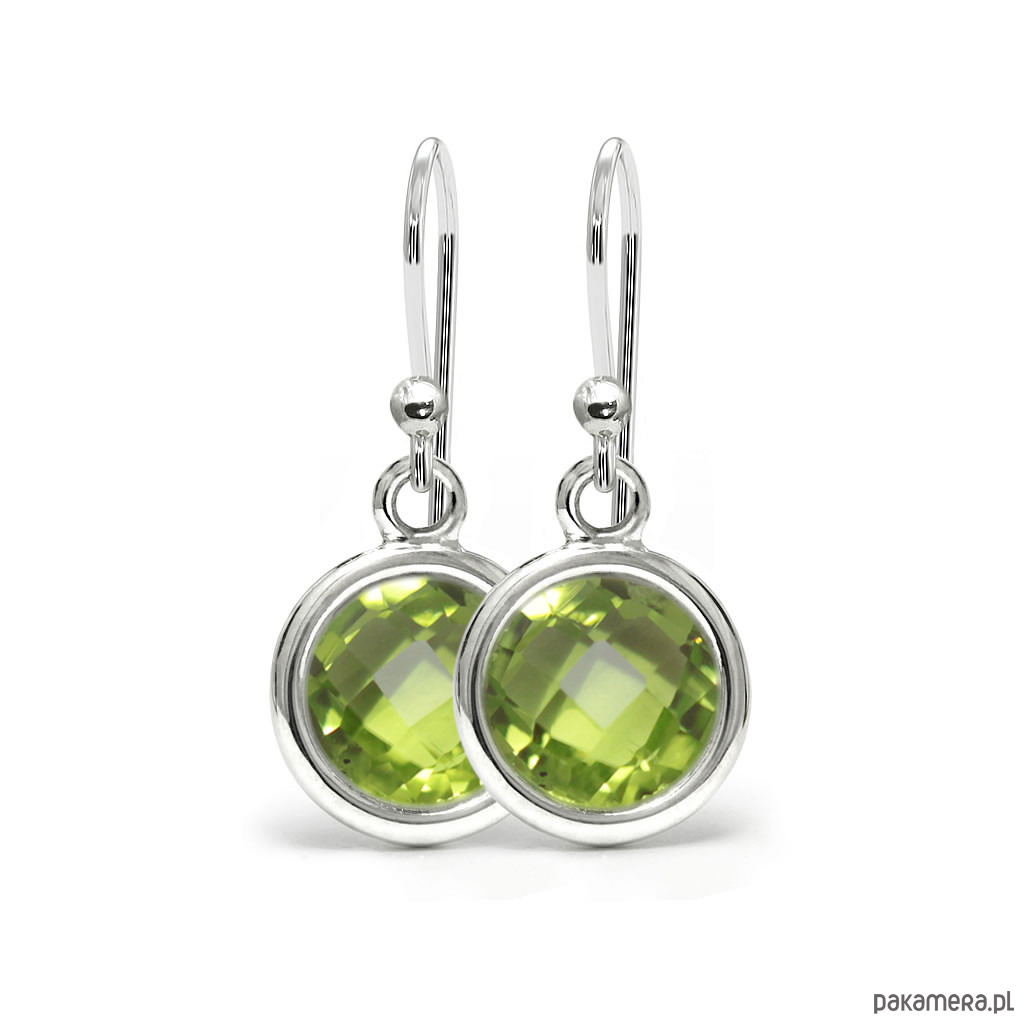 Proste a jednocześnie bardzo efektowne kolczyki, zostały wykonane w naszej pracowni jubilerskiej z najwyższej jakości materiałów: srebra próby 925 oraz naturalnych oliwinów o średnicy 7mm. W kolczykach zastosowano bigle otwarte, możliwa wymiana na bigle angielskie.