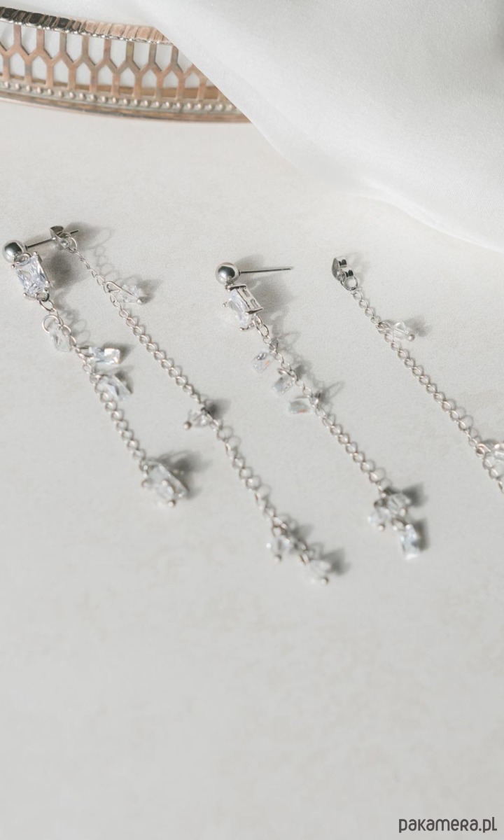 AURORA - długie kolczyki ślubne z łańcuszkami i cyrkoniami