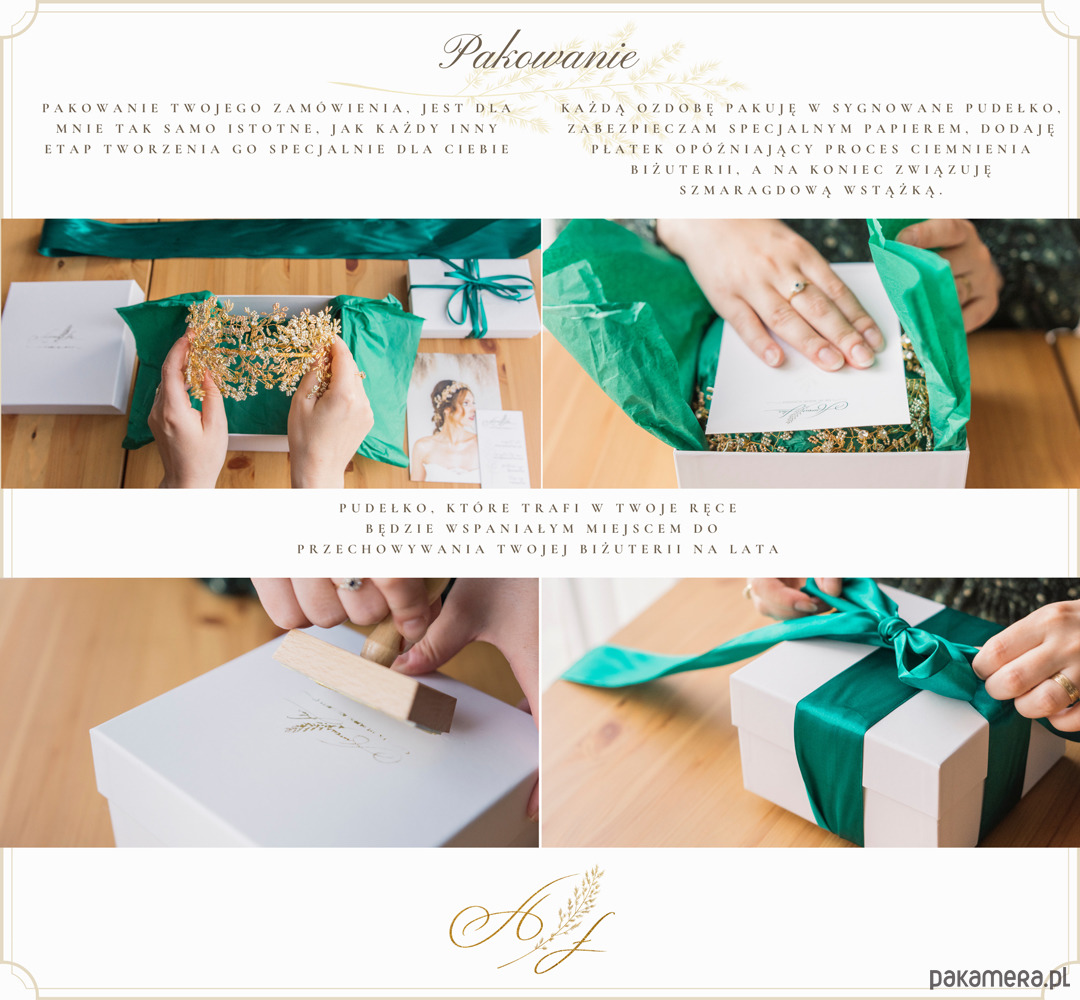 - Każda ozdoba jest starannie pakowana w firmowe pudełko z elegancką, szmaragdową kokardą.