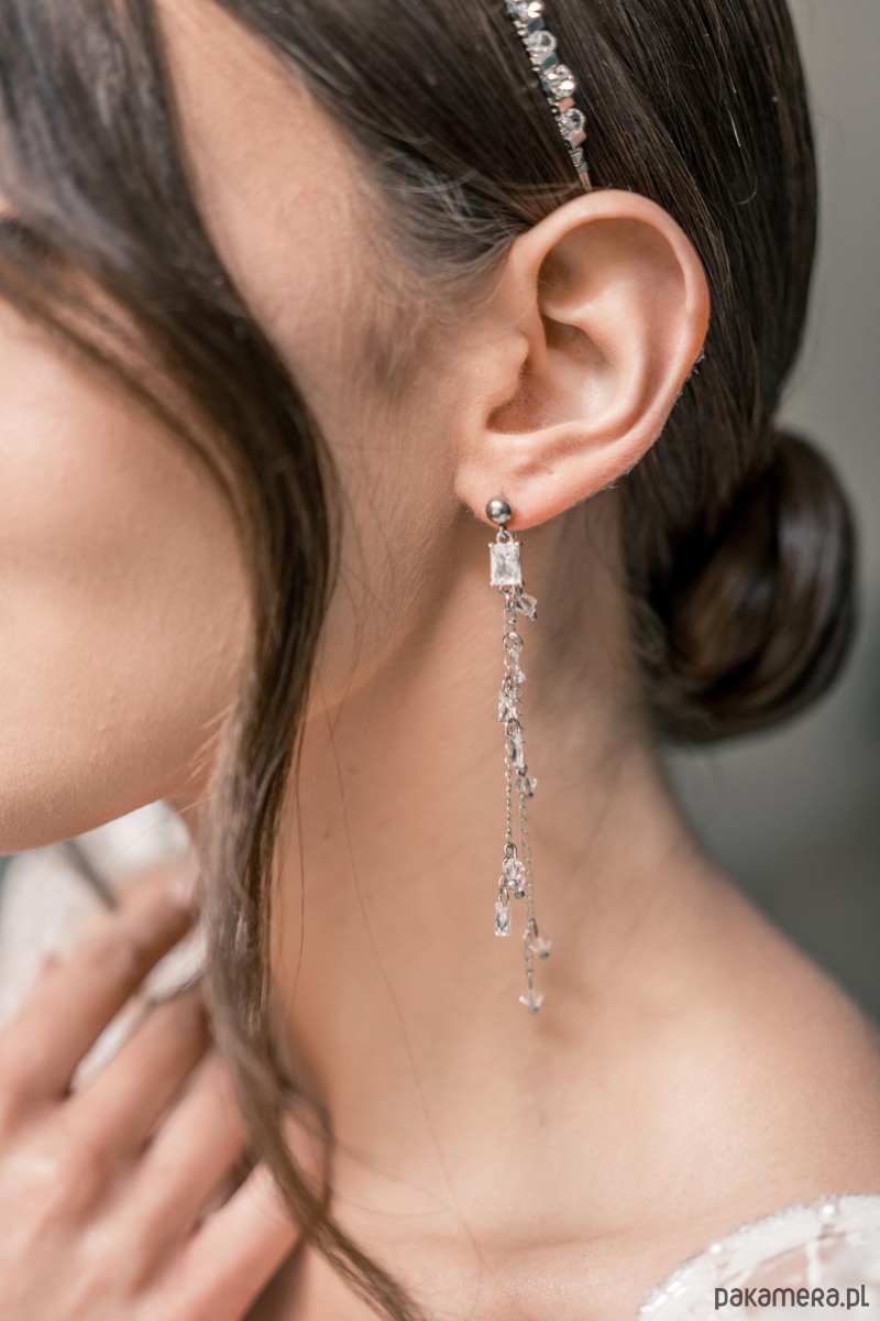 Kolczyki Aurora są ukłonem w stronę minimalistycznych ale pełnych błysku form, dzięki czemu pasują do wielu kreacji, w szczególności tych z odkrytymi ramionami dzięki czemu długie łańcuszki z delikatnymi cyrkoniami pięknie podkreślą szyję nadając całej stylizacji nowoczesnego szyku.