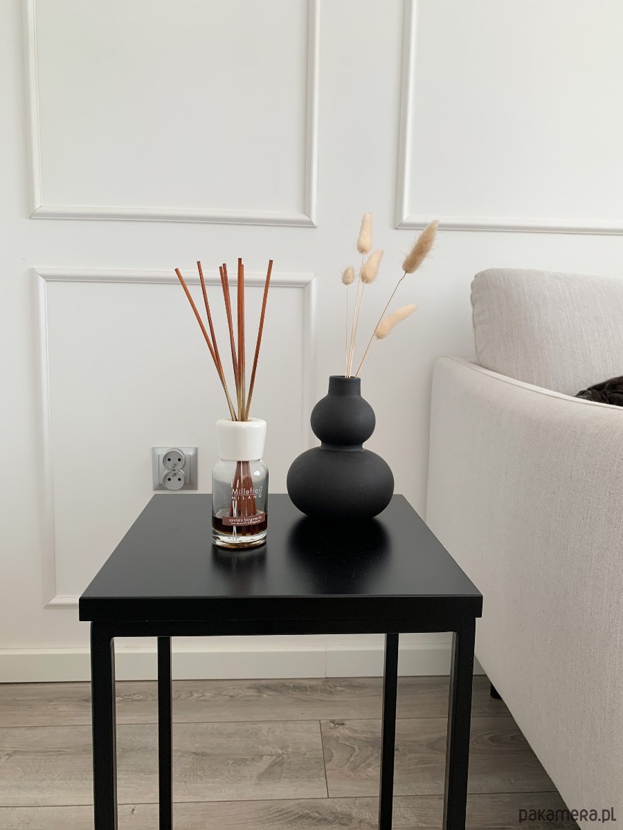 Stolik pomocniczy wyposażony jest w blat, który stworzony jest z płyty meblowej matowej czarnej. Prosty, ale nowoczesny stelaż stworzony z wytrzymałych materiałów jest pomalowany na czarno. Dzięki malowaniu proszkowemu farba nie zejdzie przez wiele lat i jest odporna na różnego rodzaju uszkodzenia. Czarny stolik, doskonale sprawdzi się w pomieszczeniach, które urządzone są w stylu nowoczesnym, klasycznym i eleganckim. Stolik nocny może służyć, jako miejsce na lampkę, czy ulubioną książkę, którą chcesz przeczytać przed snem.