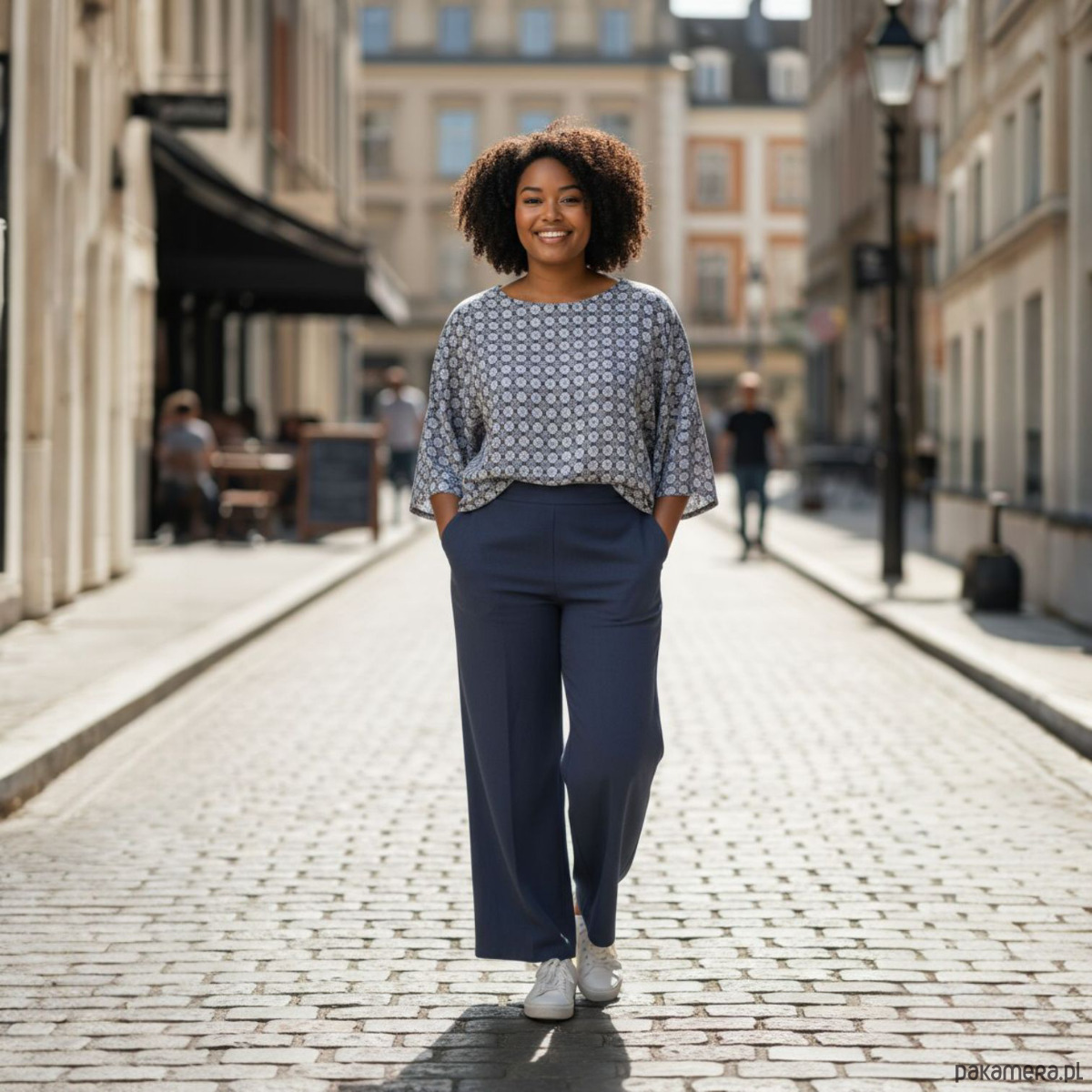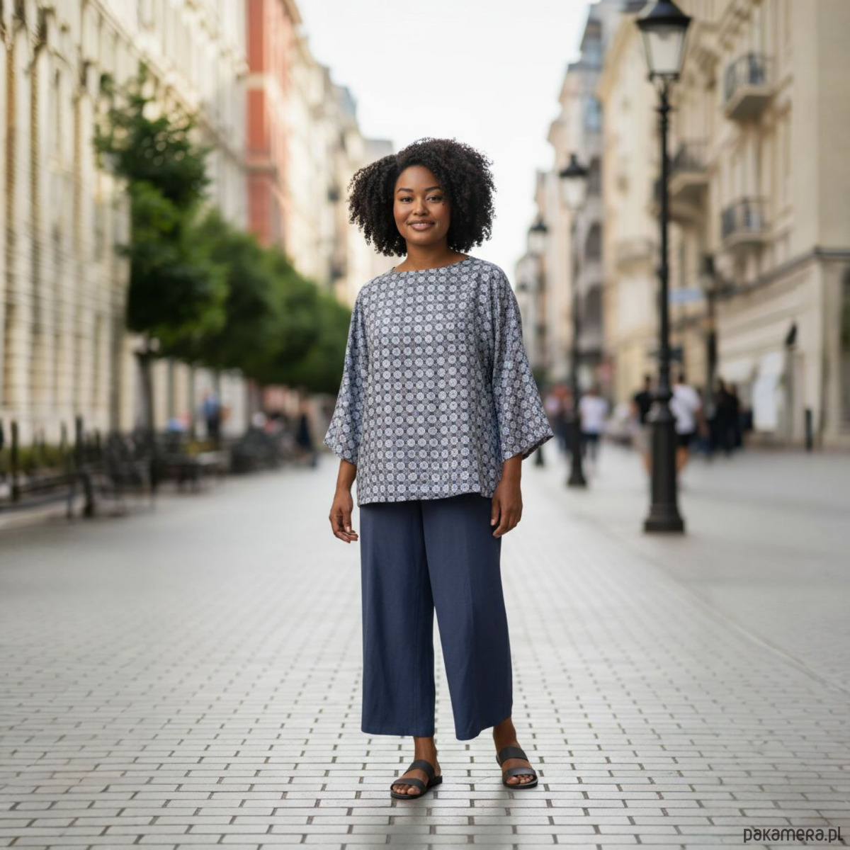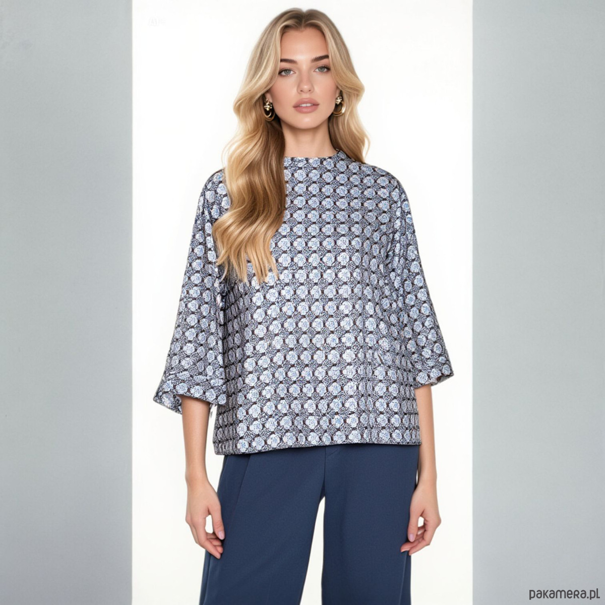 Lekka i pełna klasy bluzka uszyta z naturalnego jedwabiu. Luźny, oversize’owy krój z opuszczonymi ramionami nadaje jej nonszalanego charakteru, a subtelny połysk materiału pięknie odbija światło. Rękawy ¾ delikatnie rozszerzane, dodają lekkości i kobiecego wdzięku. Okrągłe wycięcie przy szyi podkreśla szyję i sprawia, że model świetnie komponuje się zarówno z eleganckimi spodniami, jak i prostą spódnicą. Idealna propozycja na wieczorne wyjście, spotkanie biznesowe lub stylizację w duchu „elegancji bez wysiłku”.Zapewnia wygodę ruchu i maskuje sylwetkę.