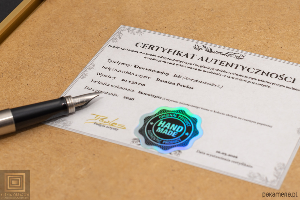 + autentyczność potwierdzona certyfikatem z sygnaturą autora,