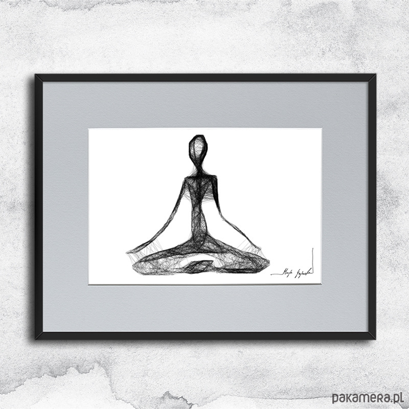 Grafika wykonana techniką mieszaną (giclée+rysunek isografem) na białym, matowym o lekko fakturowanej powierzchni, graficznym papierze Canson 250g. Unikalna kreska wygląda bardzo efektownie, zaś czarno-białe wykończenia wnętrz idealnie wpisują się puste w ściany nowoczesnych, minimalistycznych czy loftowych powierzchni.
