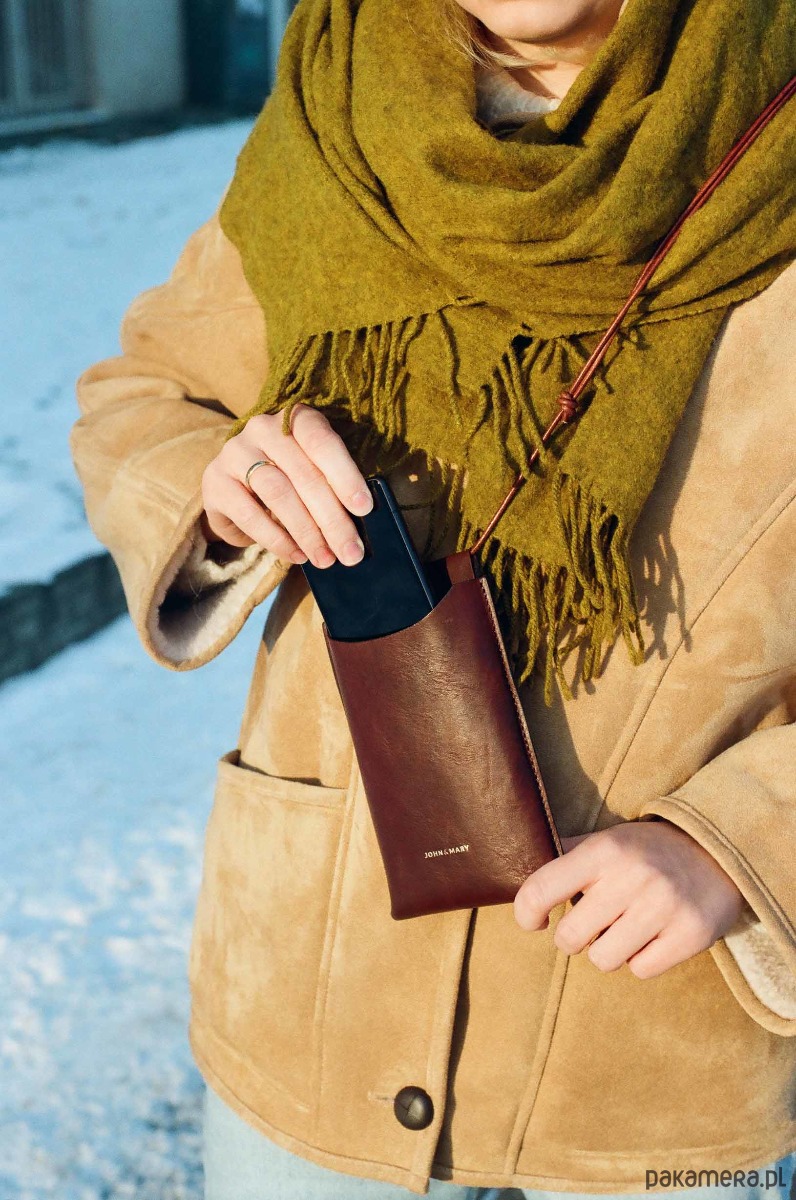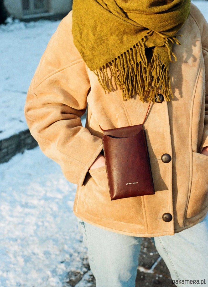 W głównej komorze pomieści smartfon, z tyłu zaś ma małą kieszonkę na karty lub banknoty. Dzięki minimalistycznej formie pasuje do wszystkich stylizacji i może być stałym elementem garderoby. Jedynym delikatnym zdobieniem etui jest małe, złote logo JOHN & MARY na froncie. Wkładanie telefonu do etui jest łatwe i przyjemne dzięki półokrągłemu wykończeniu. Skóra w tym miejscu nie będzie się zawijać ani odkształcać.