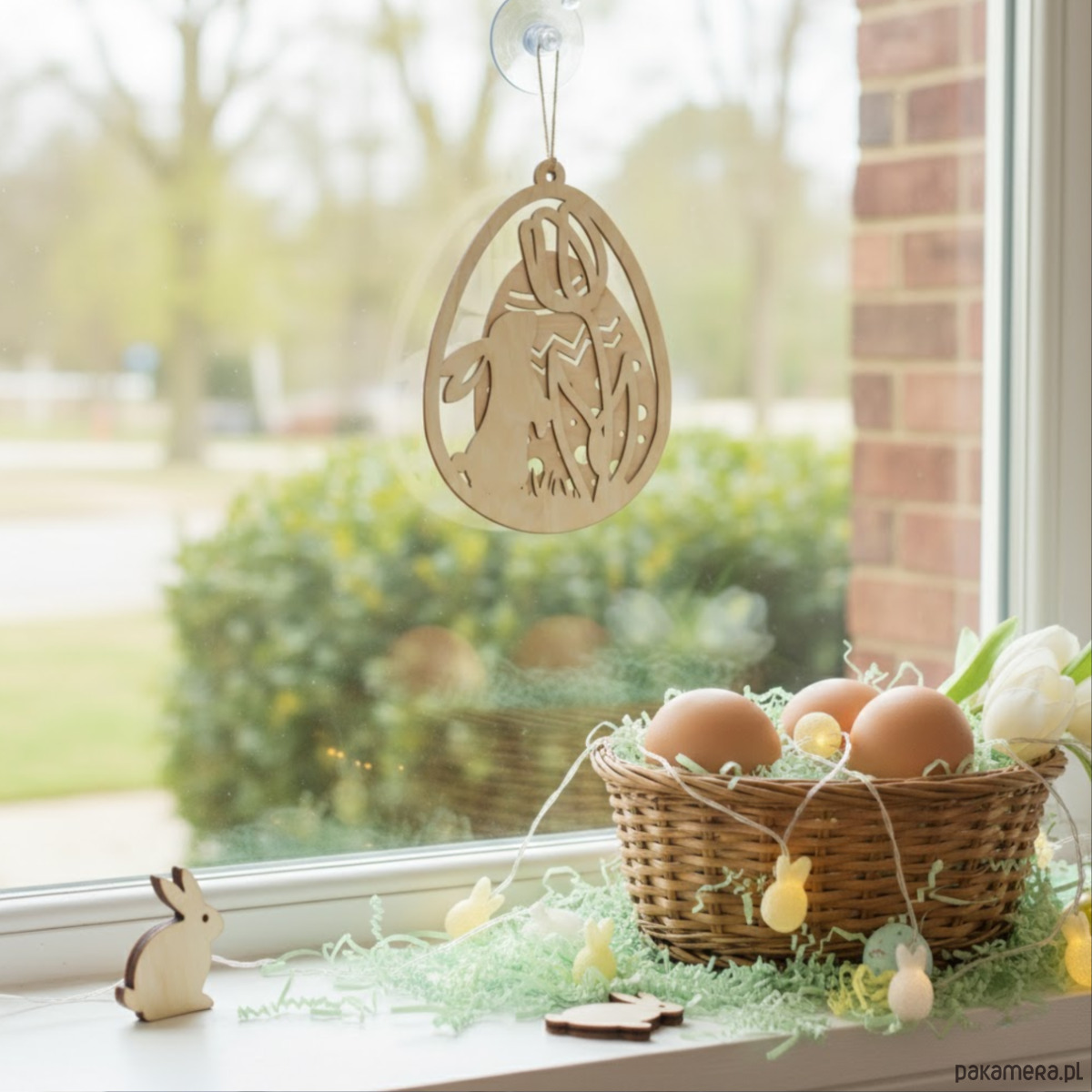 Ta zawieszka wykonana jest z dwuwarstwowej, naturalnej sklejki brzozowej, co nadaje jej wyjątkowego charakteru i trwałości. Lekka, elegancka i pełna szczegółów, doskonale wpasuje się w wiosenne i świąteczne aranżacje – od stołu po okna i dekoracje domowe. To również świetny pomysł na prezent wielkanocny, który zachwyci każdego!