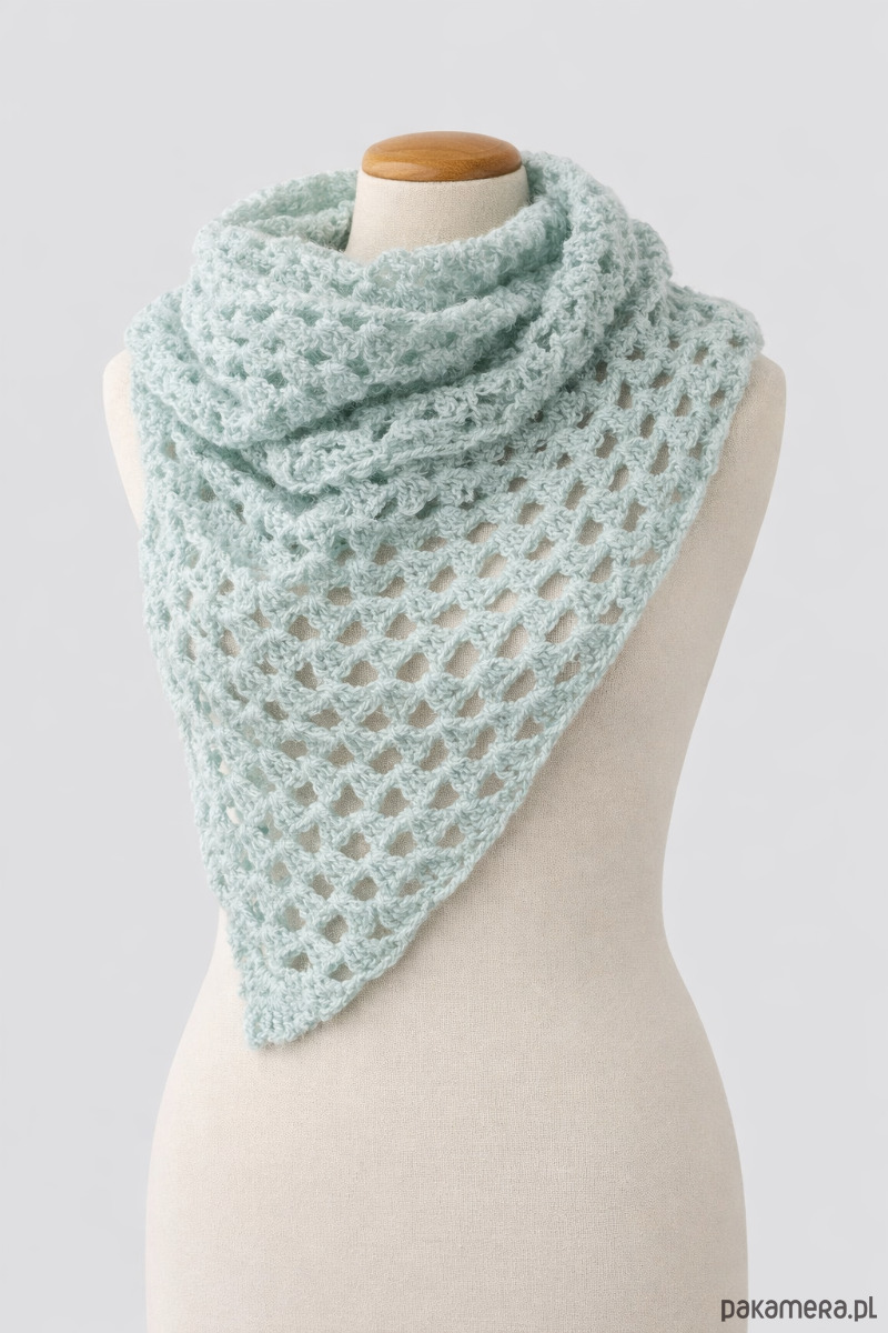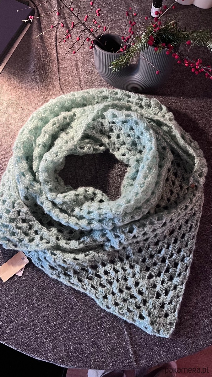 Ażurowa chusta z moherem i wełną – kolor MINT