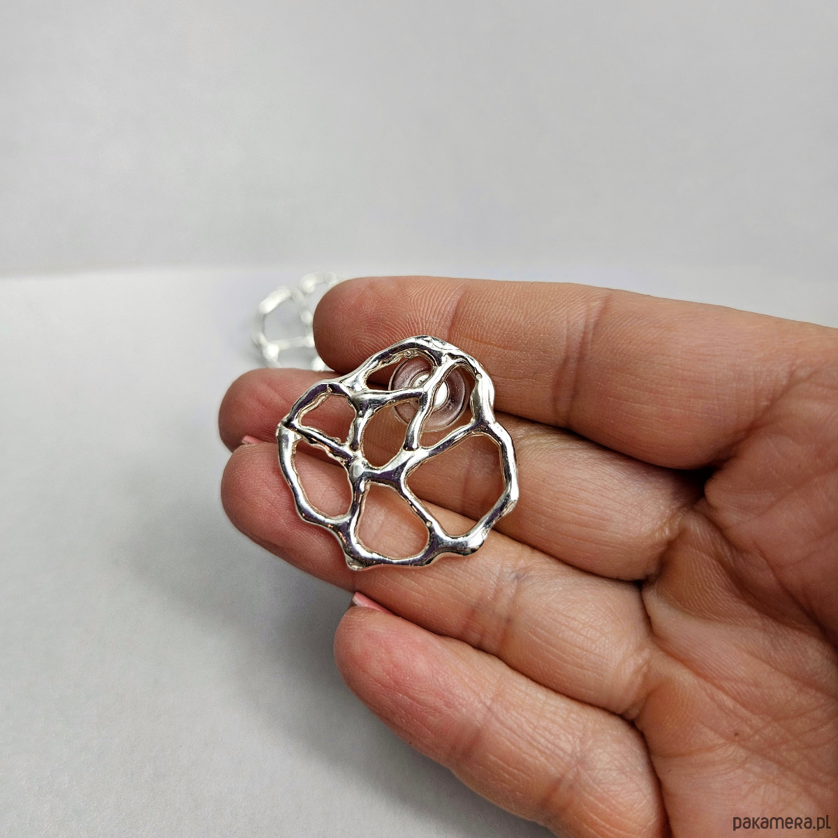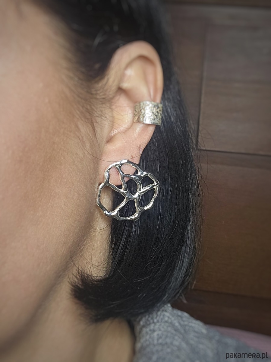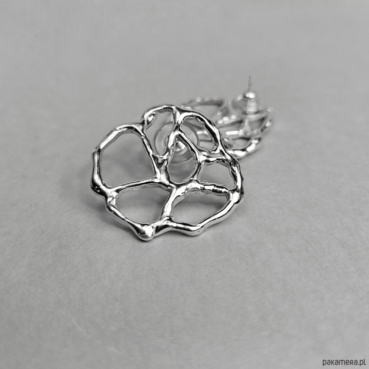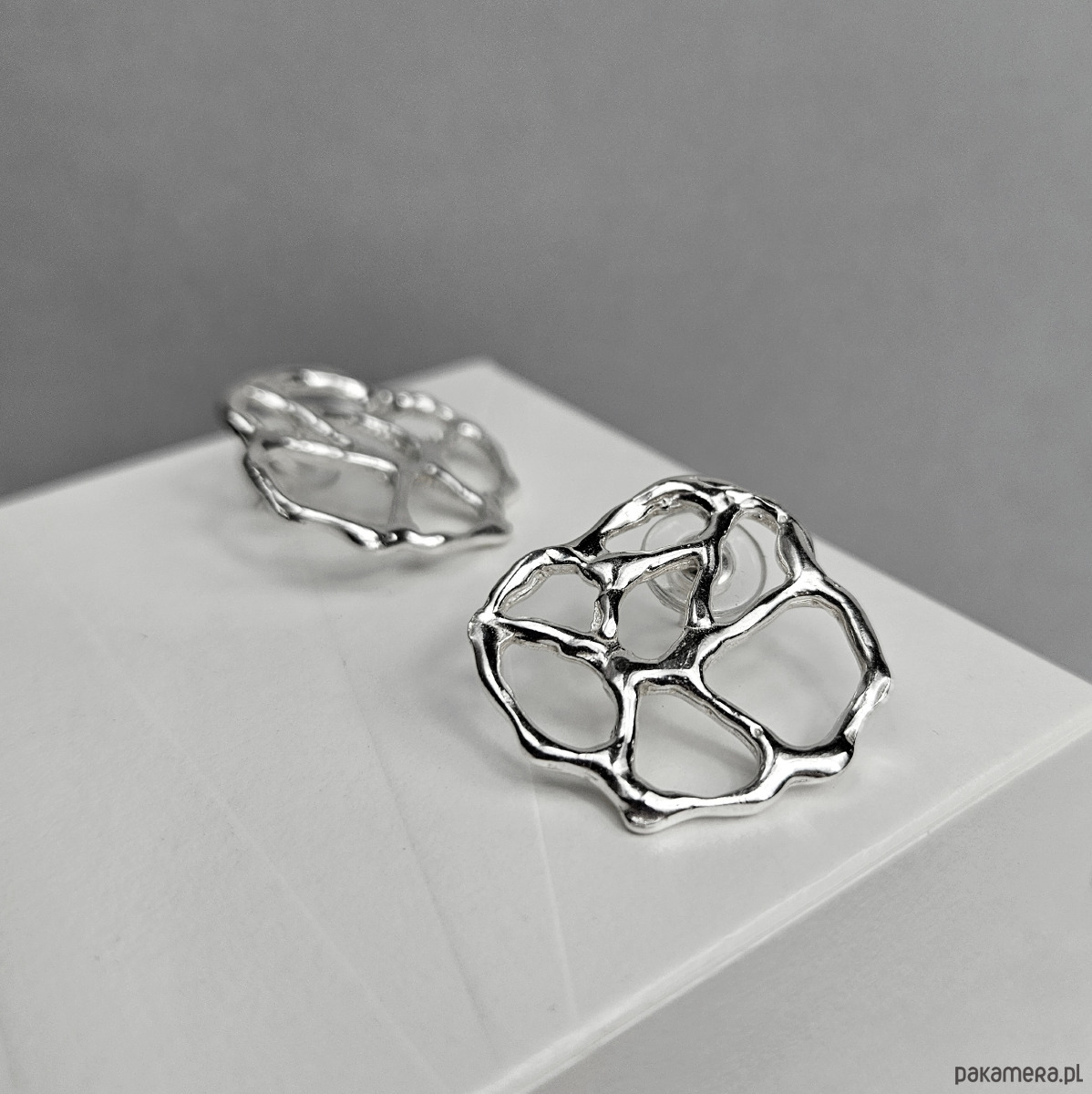 Ażurowe organiczne kolczyki srebrne koła SMUGI