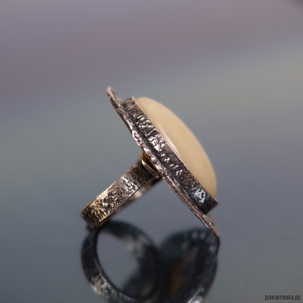 Ręcznie wykonany pierścionek „Mleczna Owalna"