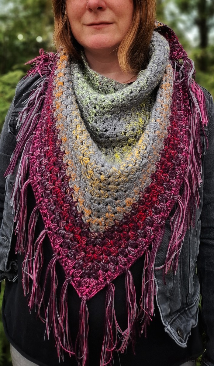 Ręcznie robiona chusta szydełkowa z frędzlami – unikat