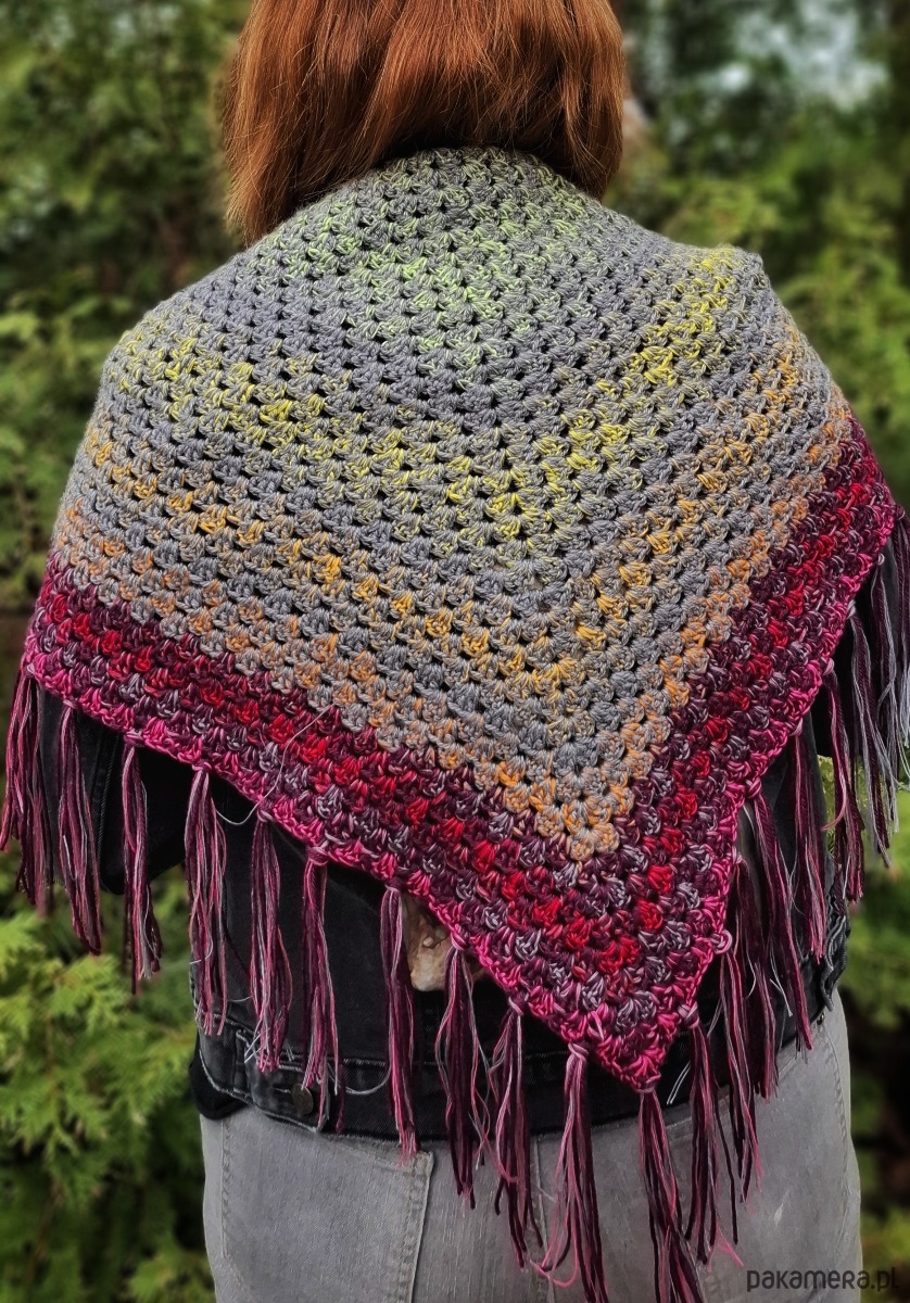 "Babcina" chusta na szydełku rozmiar M z frędzlami