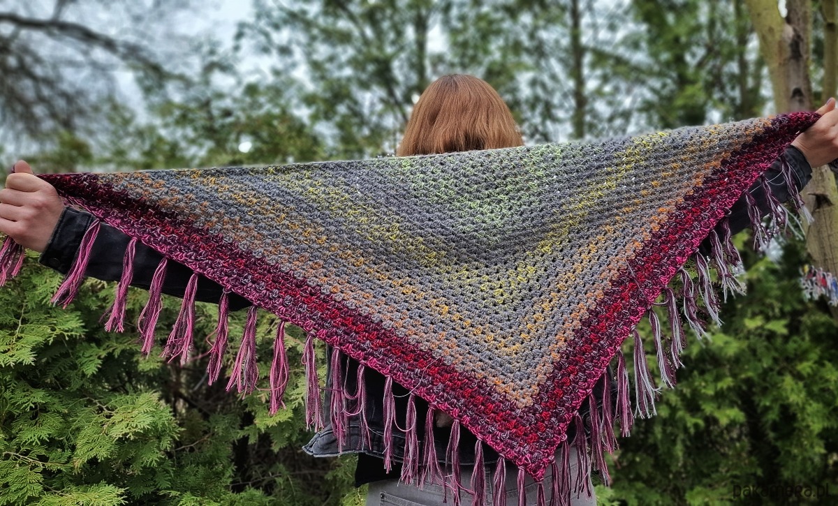 Chusta ma klasyczny trójkątny kształt, pięknie układa się na ramionach i może być noszona zarówno jako otulający szal, jak i efektowny dodatek do stylizacji. Wykończona długimi frędzlami, które nadają jej lekkości i boho klimatu.