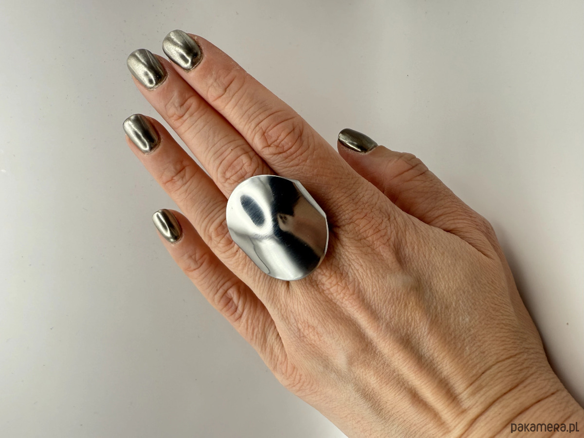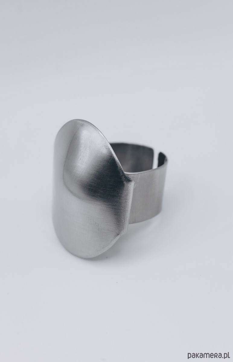 Duży sygnet z obłym, wypukłym elementem ozdobnym o wymiarach 30 x 30 mm, który przyciąga uwagę i podkreśla charakter stylizacji. Regulowany rozmiar umożliwia wygodne dopasowanie poprzez delikatne rozszerzenie obrączki. Wykonany ze stali chirurgicznej, jest trwały, nie uczula i bezpieczny dla alergików.