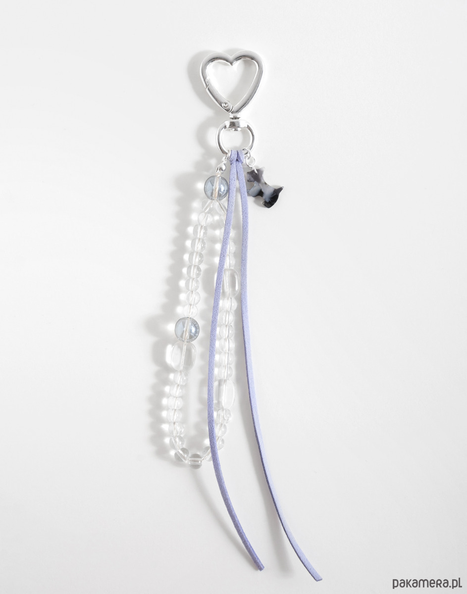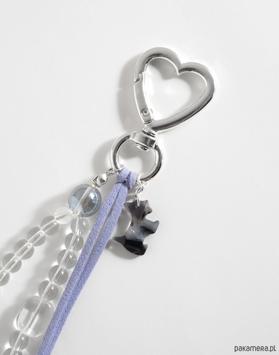 Brelok do torebki, plecaka lub kluczy wykonano ręcznie z połączenia koralików szklanych, rzemienia zamszowego oraz zawieszki w kształcie pieska. To drobny dodatek, który przyciąga wzrok i pięknie dopełnia stylizacje.