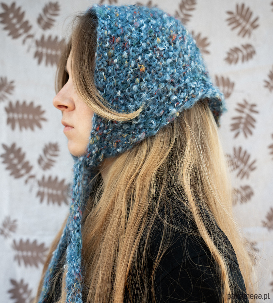 Chusty Babuszki są ręcznie robione na drutach z wysokiej jakości włóczki moherowej lub mieszanki moheru.