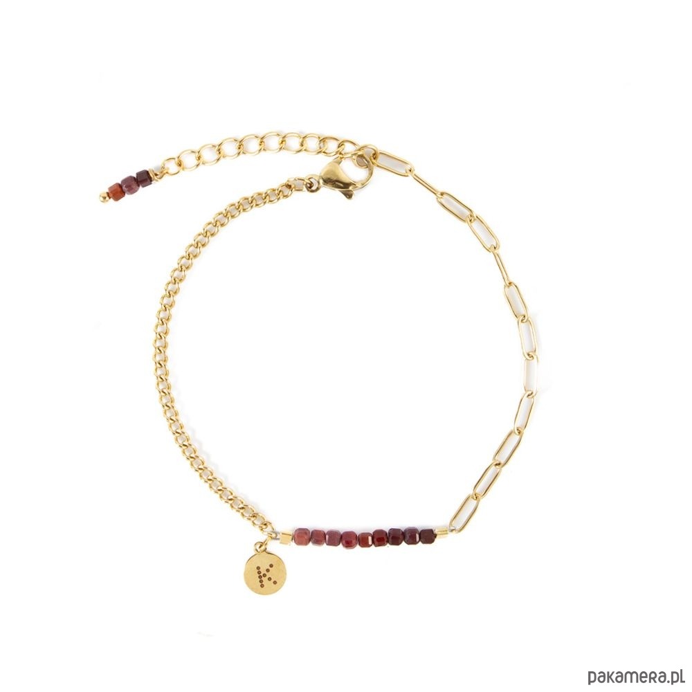 Poznaj naszą nowość! Nasza ponadczasowa bransoletka Baby Bestseller z kamieniem Mookait to połączenie subtelności, elegancji i naturalnej energii. Delikatny, dwusplotowy łańcuszek w złotym odcieniu dopełniają drobne kamienie w ciepłych tonach ziemi – każdy z nich symbolizuje wewnętrzną siłę i spokój.Mookait to kamień odwagi i równowagi. Pomaga zachować pewność siebie w trudnych chwilach, wspiera intuicję i przypomina o harmonii między sercem a rozumem. Jego barwy – od beżu po burgund – odzwierciedlają energię natury i poczucie stabilności. Bransoletka została wykonana ręcznie ze stali szlachetnej. To elegancki dodatek, który podkreśla naturalne piękno i dodaje pewności siebie każdego dnia. Znaczenie kamieni: Mookait to kamień antystresowy. Oczyszcza umysł, pomaga właściwie ocenić sytuację, a tym samym zrealizować postawione sobie cele. Wymiary: Kamienie: Mookait Wielkość kamieni: 2mm Grubość splotu pancerki: ok. 2mm x 1mm Grubość łańcucha: 3mm x 6,5 mm x 0,5mmDługość bransoletki: standardowa ok 17,5cm + 3cmBlaszka z logo: ok. 6mm Materiał: antyalergiczna stal chirurgiczna Rozmiar uniwersalny z możliwością regulacji za pomocą przedłużki.