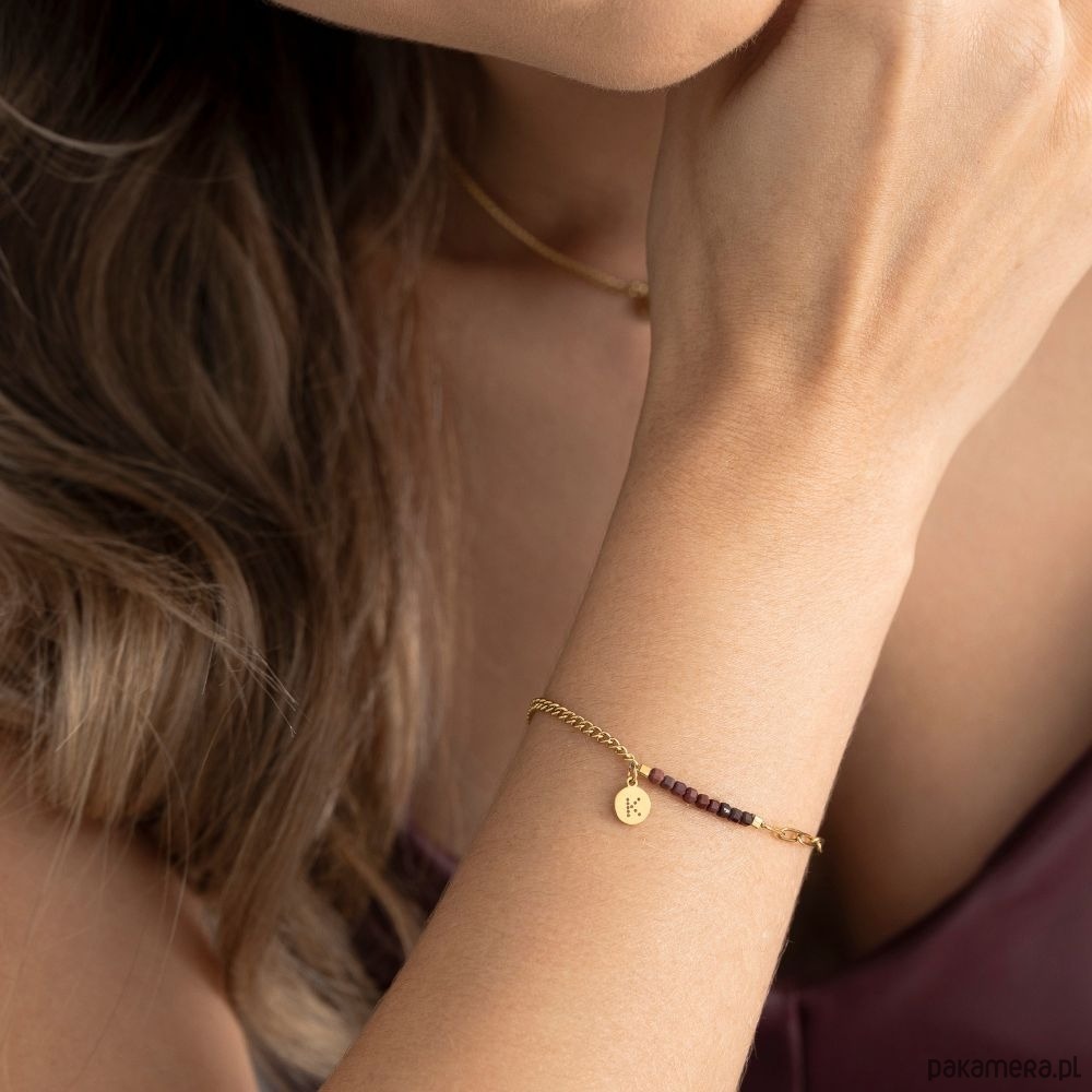 Poznaj naszą nowość! Nasza ponadczasowa bransoletka Baby Bestseller z kamieniem Mookait to połączenie subtelności, elegancji i naturalnej energii. Delikatny, dwusplotowy łańcuszek w złotym odcieniu dopełniają drobne kamienie w ciepłych tonach ziemi – każdy z nich symbolizuje wewnętrzną siłę i spokój.Mookait to kamień odwagi i równowagi. Pomaga zachować pewność siebie w trudnych chwilach, wspiera intuicję i przypomina o harmonii między sercem a rozumem. Jego barwy – od beżu po burgund – odzwierciedlają energię natury i poczucie stabilności. Bransoletka została wykonana ręcznie ze stali szlachetnej. To elegancki dodatek, który podkreśla naturalne piękno i dodaje pewności siebie każdego dnia. Znaczenie kamieni: Mookait to kamień antystresowy. Oczyszcza umysł, pomaga właściwie ocenić sytuację, a tym samym zrealizować postawione sobie cele. Wymiary: Kamienie: Mookait Wielkość kamieni: 2mm Grubość splotu pancerki: ok. 2mm x 1mm Grubość łańcucha: 3mm x 6,5 mm x 0,5mmDługość bransoletki: standardowa ok 17,5cm + 3cmBlaszka z logo: ok. 6mm Materiał: antyalergiczna stal chirurgiczna Rozmiar uniwersalny z możliwością regulacji za pomocą przedłużki.