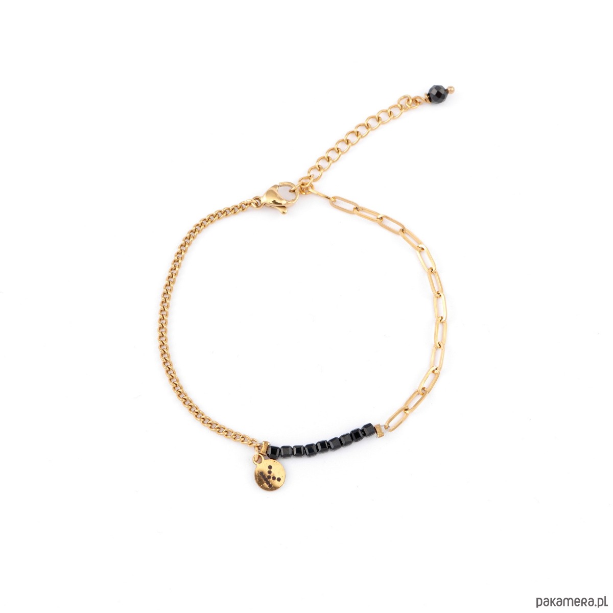 Bransoletka wykonana jest z antyalergicznej stali szlachetnej pozłacanej, która nie uczula. Bez obaw, pozłocenie pięknie się utrzymuje, nie ciemnieje i nie wyciera.