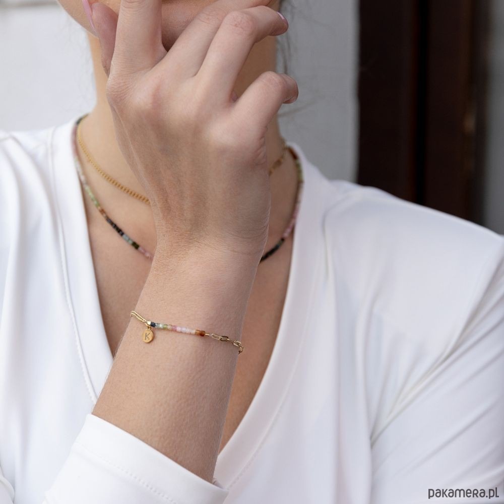 Poznaj naszą nowość! Nasza ponadczasowa bransoletka Bestseller w nowej, delikatniejszej formie - Baby Bestseller. Pozłacaną bransoletkę wykonałyśmy z dwóch łańcuchów o różnych splotach i Kostek Kolorowego Turmalinu.