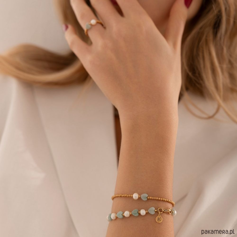 Kamienie: Hematyt/PerłaWielkość kamieni: 2mm/4mmSerce Amazonitu: ok 6mmGrubość splotu pancerki: ok. 2mm x 1mmGrubość łańcucha: 3mm x 6,5 mm x 0,5mmBlaszka z logo: ok. 6mmMateriał: antyalergiczna stal chirurgiczna