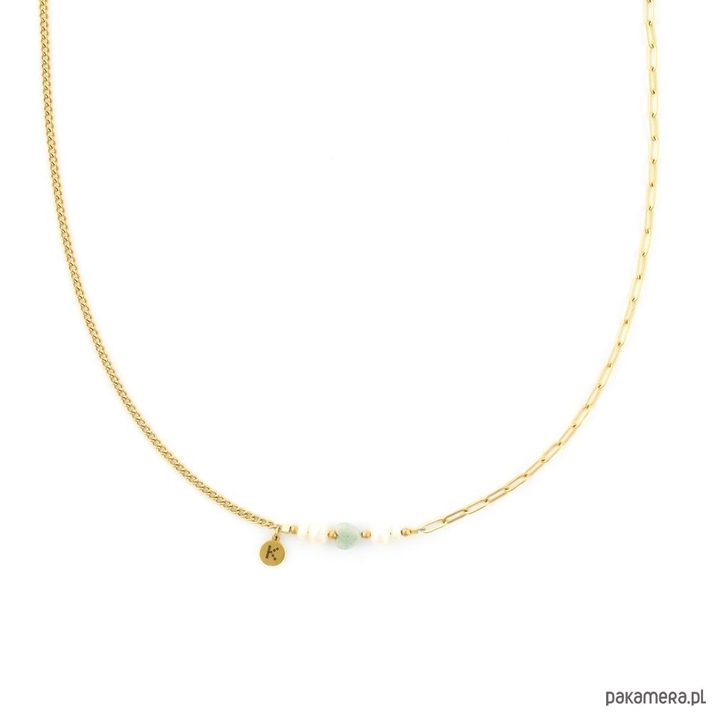 Naszyjnik wykonany jest z antyalergicznej stali szlachetnej pozłacanej, która nie uczula. Bez obaw, pozłocenie pięknie się utrzymuje, nie ciemnieje i nie wyciera.