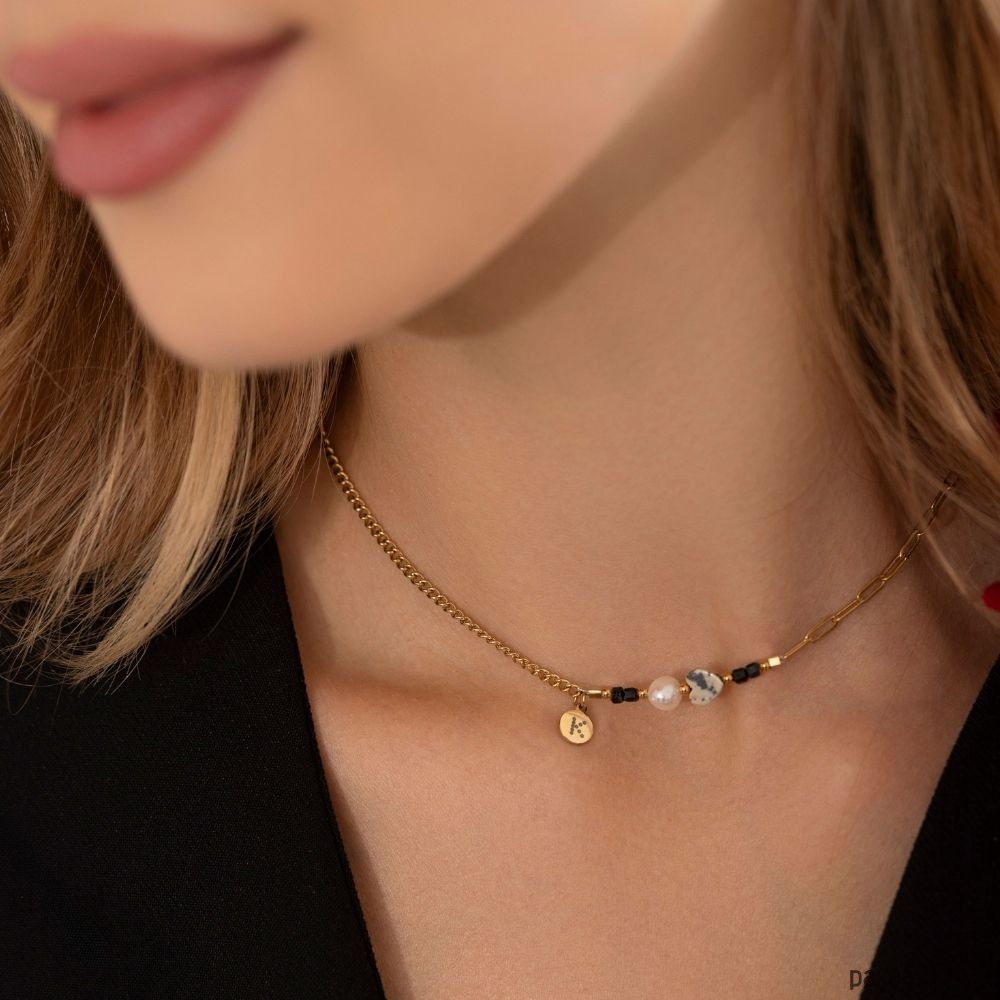 Naszyjnik wykonany jest z antyalergicznej stali szlachetnej pozłacanej, która nie uczula. Bez obaw, pozłocenie pięknie się utrzymuje, nie ciemnieje i nie wyciera.