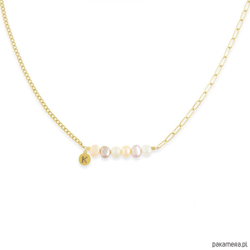 Ten bestsellerowy naszyjnik to połączenie klasyki i świeżego, współczesnego designu. Wykonany z dwóch subtelnych, pozłacanych łańcuszków o różnych splotach, układa się na dekolcie z wyjątkową lekkością i wyczuciem stylu. W jego centralnej części umieszczono sześć drobnych Pereł, które przyciągają spojrzenia swoją miękką poświatą i szlachetną prostotą.