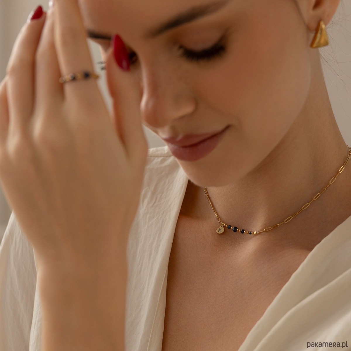 Naszyjnik wykonany jest z antyalergicznej stali szlachetnej pozłacanej, która nie uczula. Bez obaw, pozłocenie pięknie się utrzymuje, nie ciemnieje i nie wyciera.