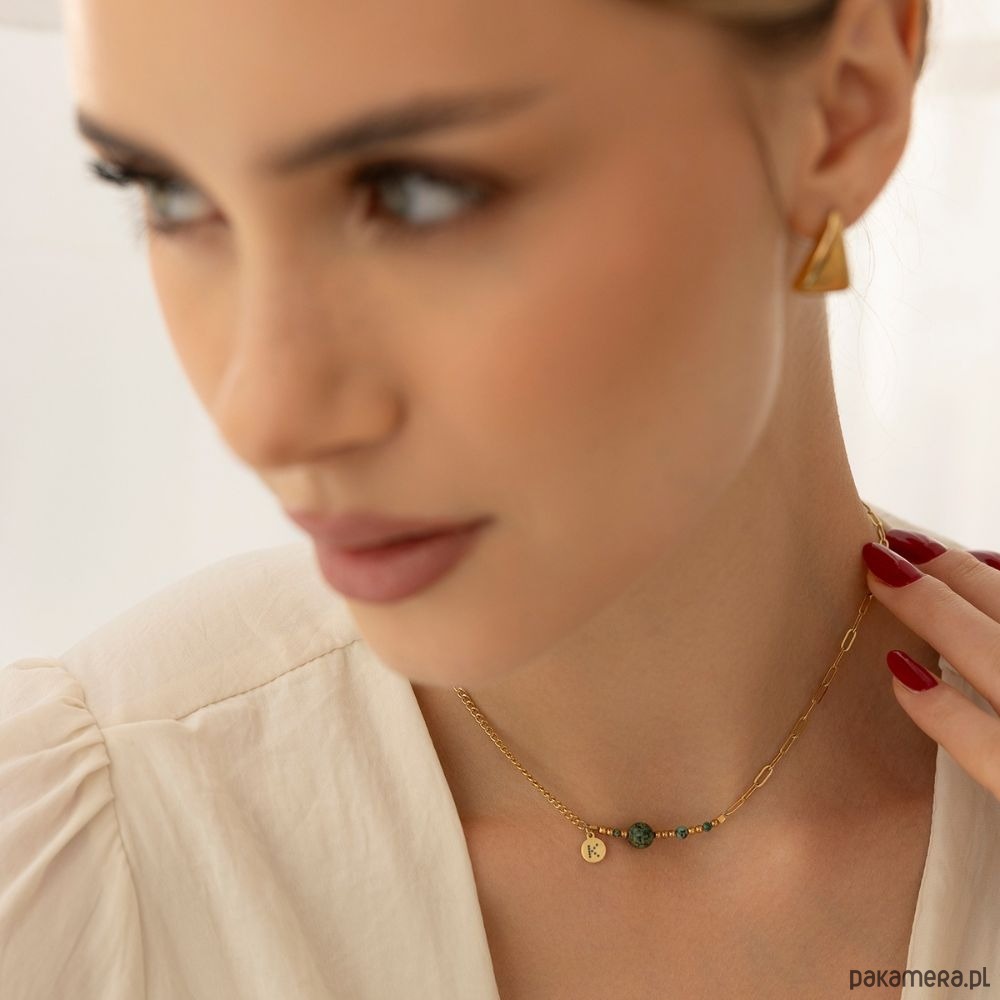 Naszyjnik wykonany jest z antyalergicznej stali szlachetnej pozłacanej, która nie uczula. Bez obaw, pozłocenie pięknie się utrzymuje, nie ciemnieje i nie wyciera.