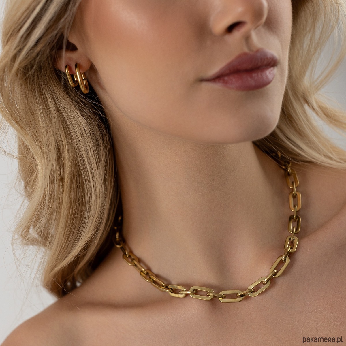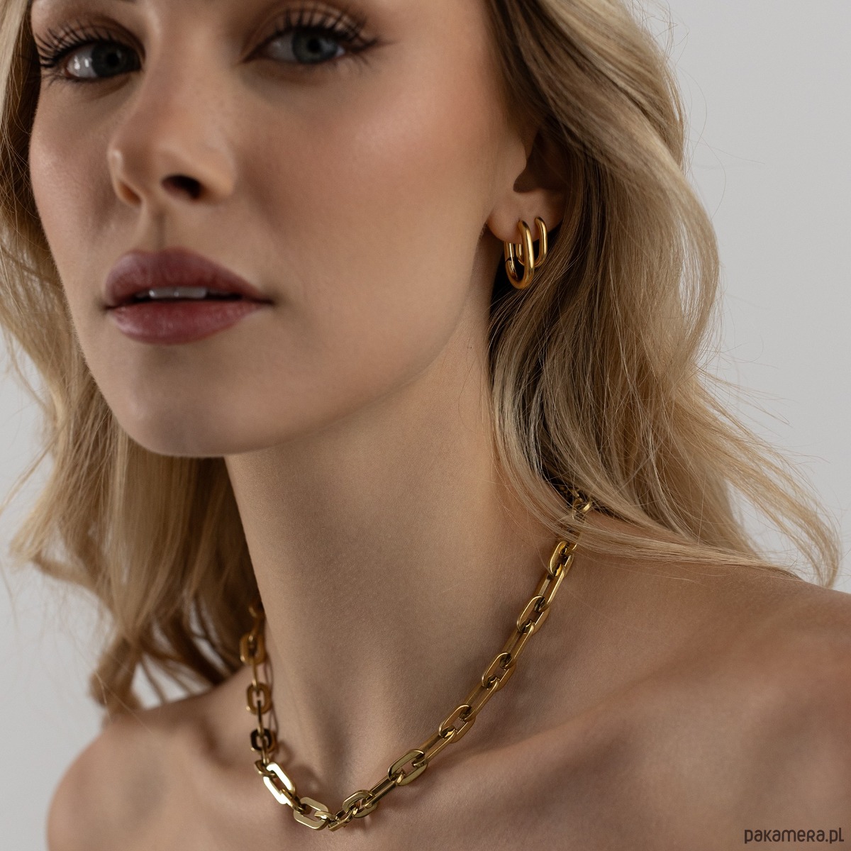 Złoty blask pozłacanej stali pięknie odbija światło, dodając twarzy subtelnego rozświetlenia. Kolczyki są lekkie, wygodne i pasują do wszystkiego – od codziennych stylizacji po wieczorne wyjścia. Dzięki swojemu uniwersalnemu kształtowi stanowią idealną bazę do tworzenia biżuteryjnych zestawów – świetnie komponują się z kolczykami sztyftami lub minimalistycznym łańcuszkiem.