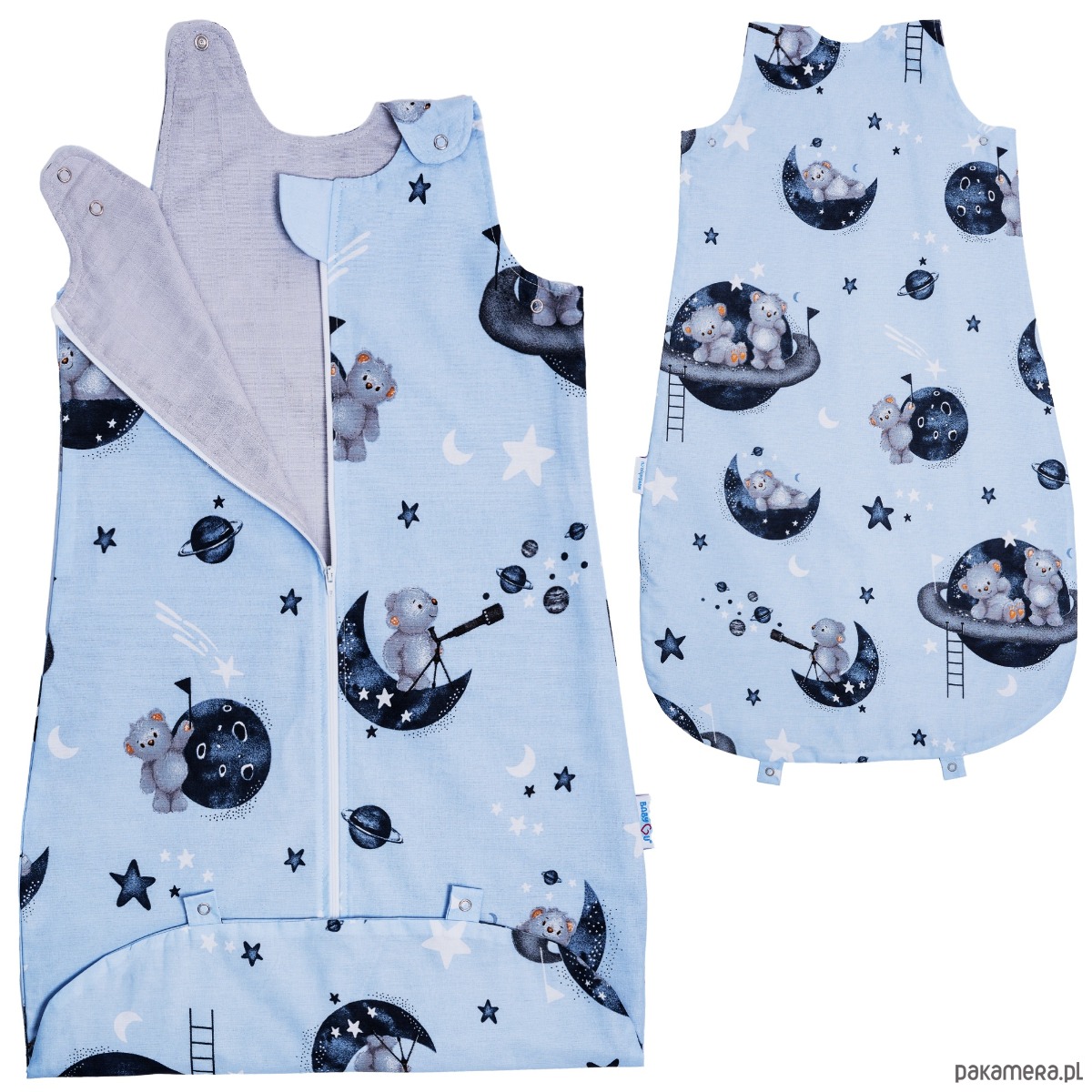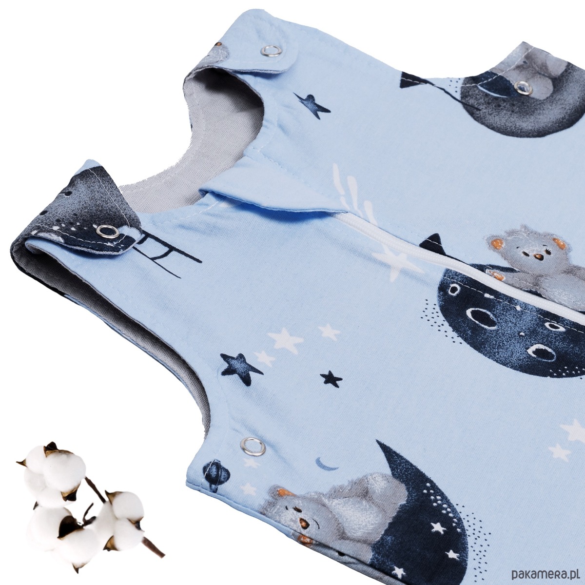 Nasz śpiworek to trwałe, bezpieczne, praktyczne i przemyślane rozwiązanie, które doskonale zastępuje tradycyjny kocyk lub kołderkę. Pięknie pasuje do pozostałych produktów z naszej kolekcji. Szyjemy go ręcznie w pracowni w Polsce, z dużą dbałością o każdy szczegół.