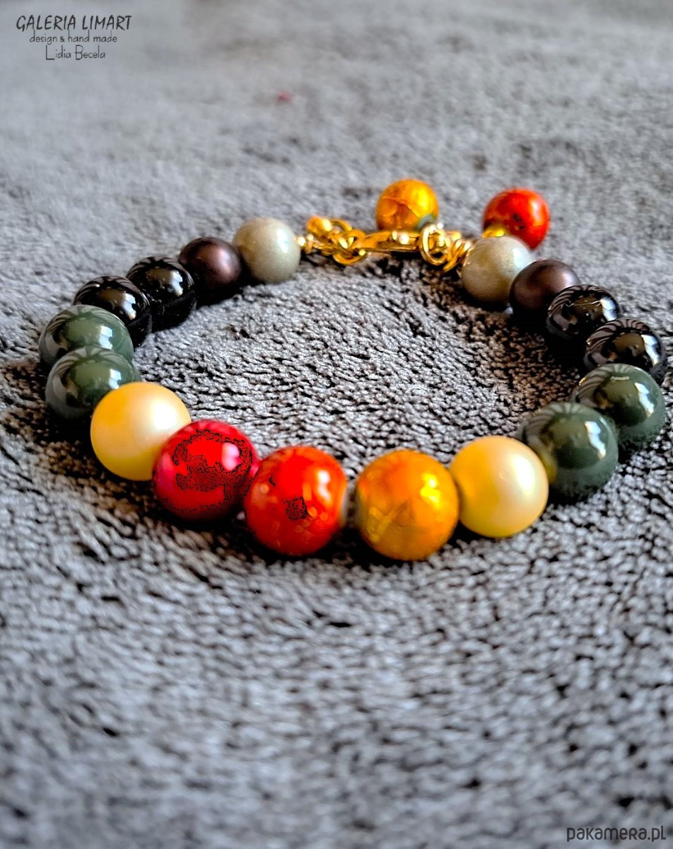 Moja efektowna kompozycja bransoletki ze szklanych korali w bajecznej palecie barw dopasowanej kolorystycznie.