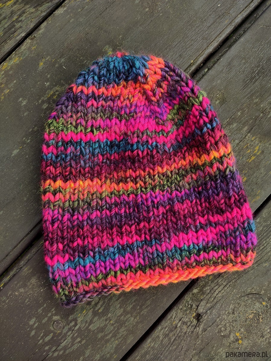 Gruba, ciepła, mięsista i mięciutka czapa wykonana ręcznie na drutach z hiszpańskiej włóczki w pięknych soczystych kolorach (53% wełna, 47% akryl), przyjemna w dotyku. Czapka jest bezszwowa, DWUSTRONNA.
