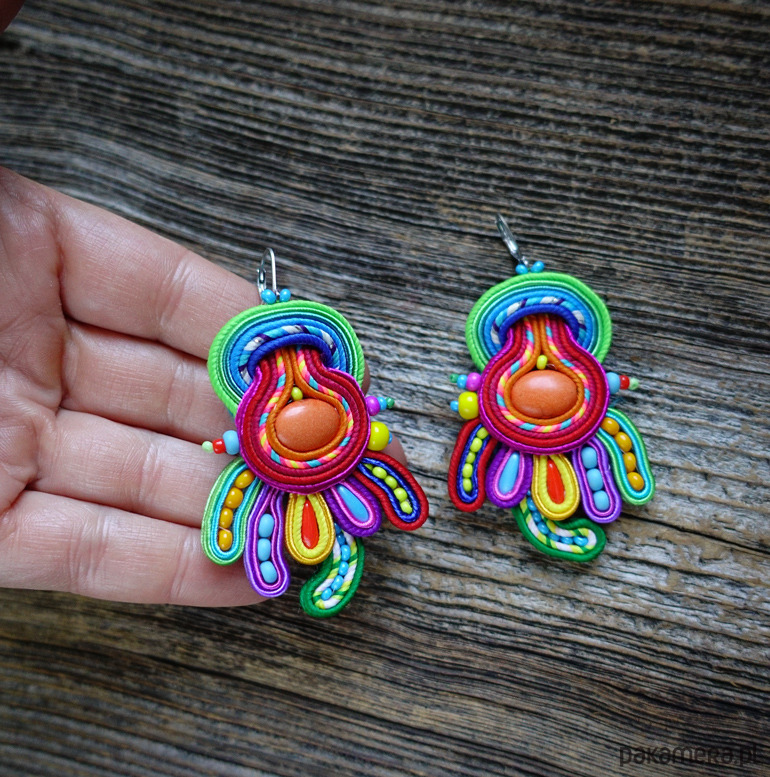 Kolczyki są zaimpregnowane preparatem chroniącym przed wilgocią. Na odwrocie kolczyki podszyte są filcem.