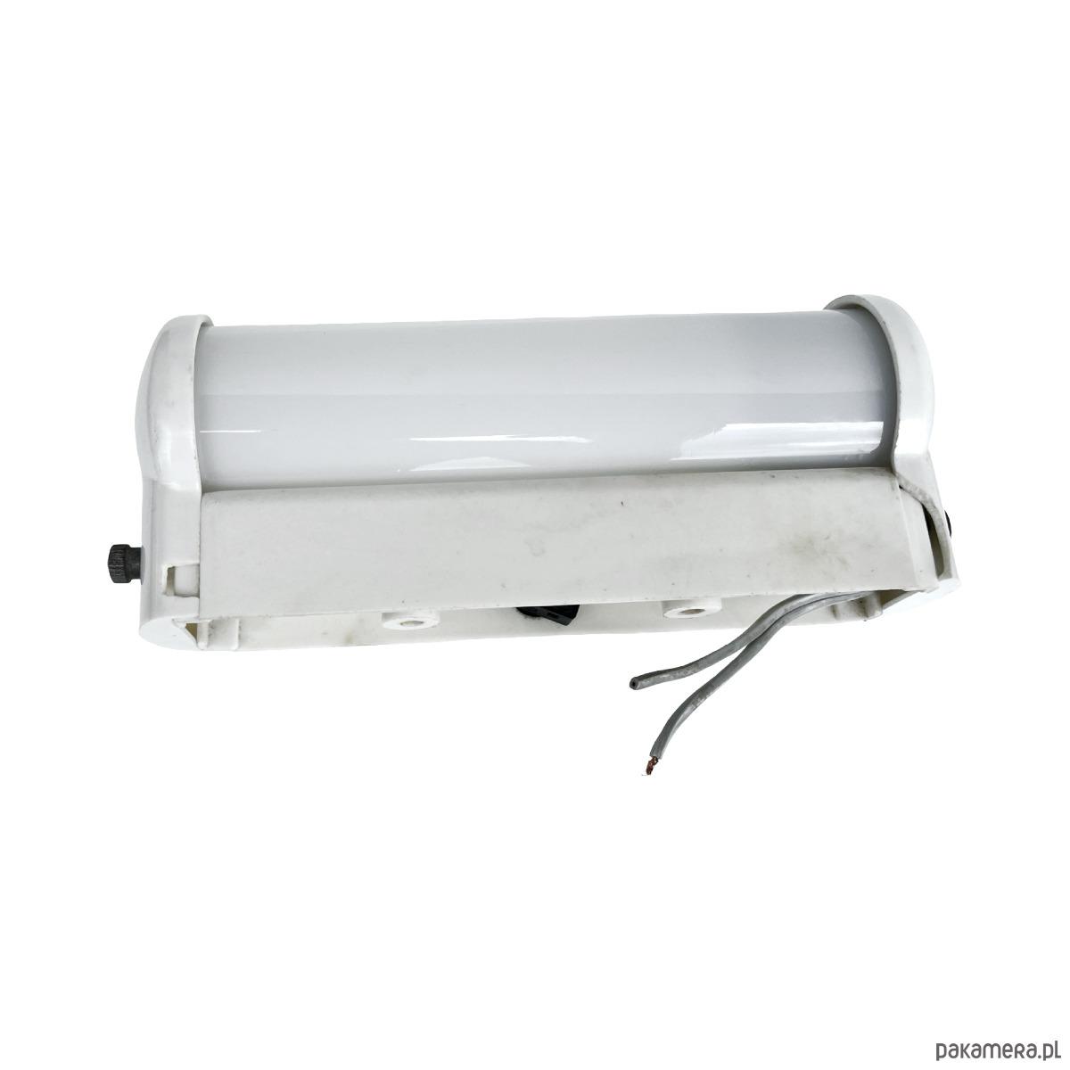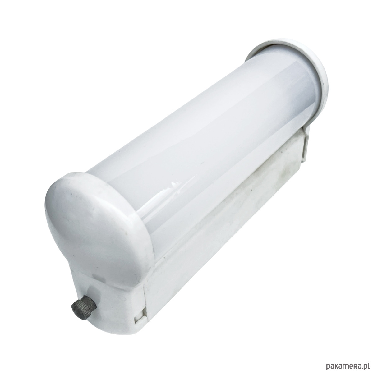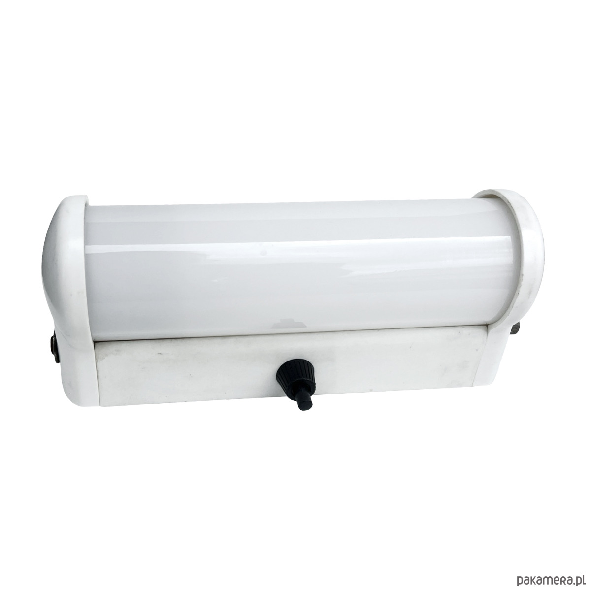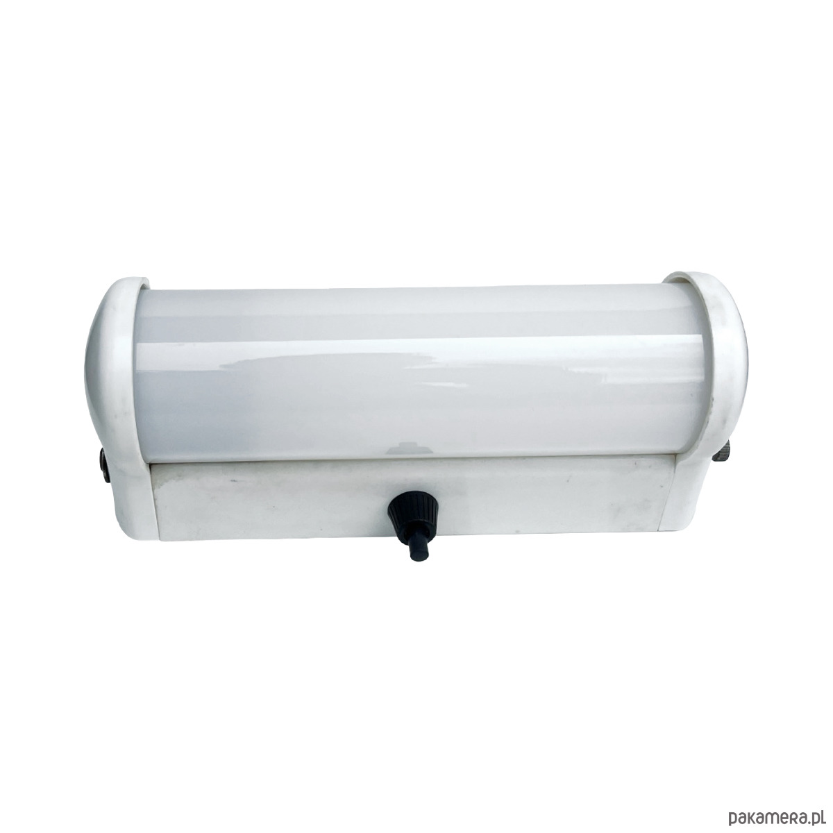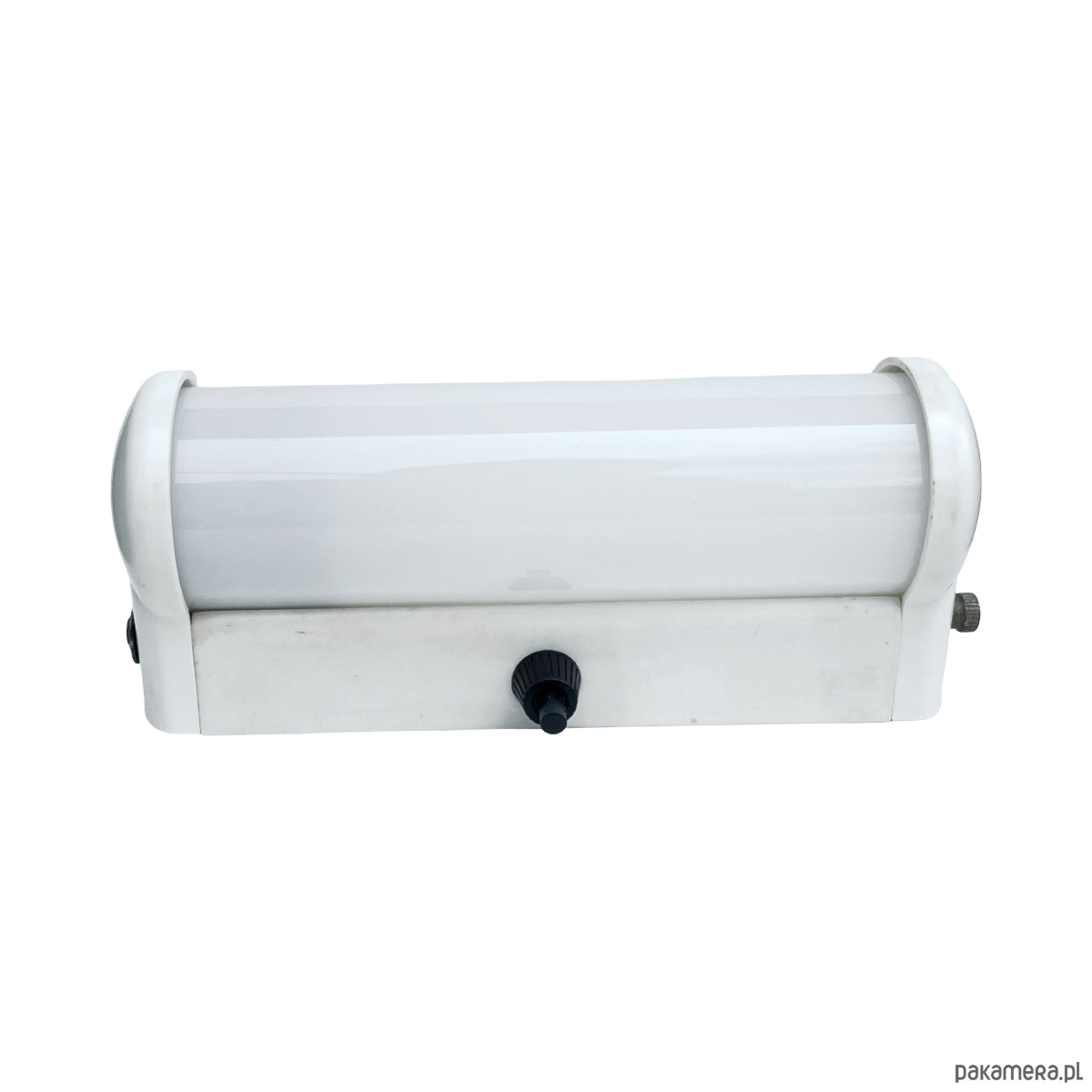 Klasyczny, modernistyczny kinkiet bakelitowy ze szklanym, tubowym kloszem wyprodukowany w Czechosłowacji w połowie ubiegłego wieku. Lampa sprawna w stanie oryginalnym dobrym, nosi ślady użytkowania. Uszkodzenie podstawy widoczne na zdjęciach. Lampa na pojedynczą żarówkę E14 do 40W.