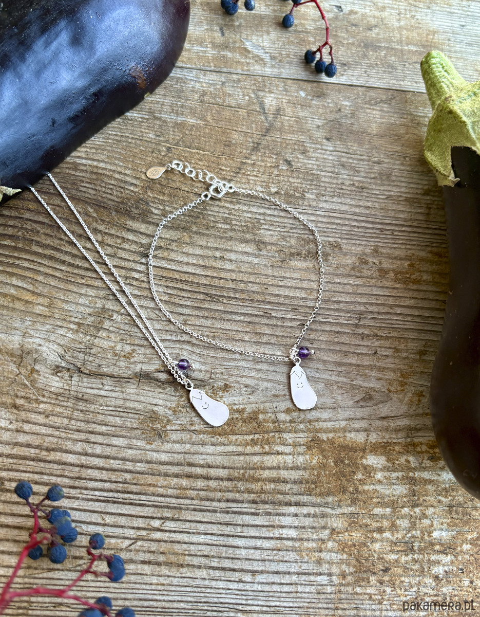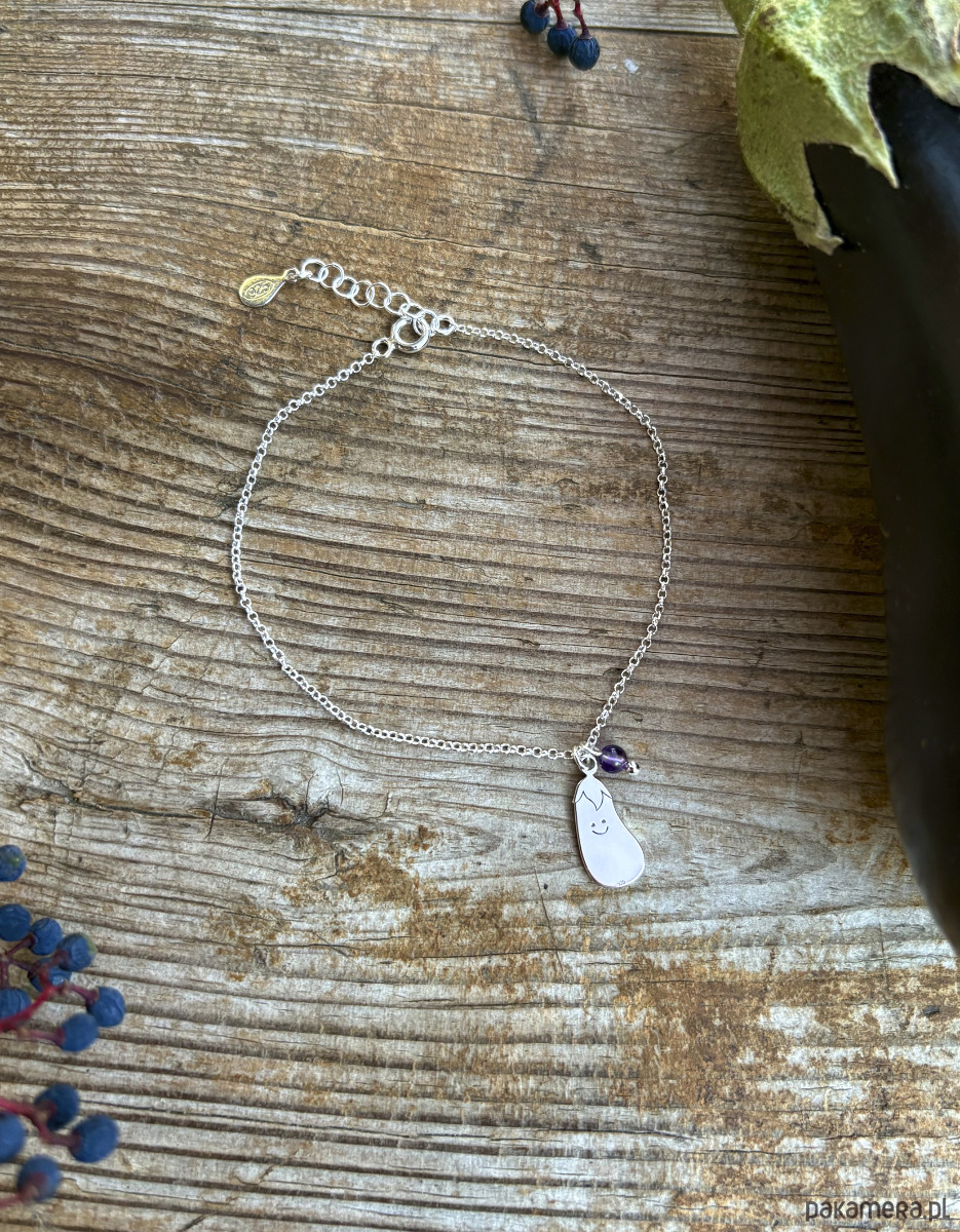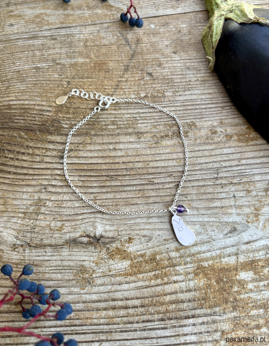 Bransoletka z uśmiechniętym bakłażanem z dodatkiem 3mm fioletowego ametystu.