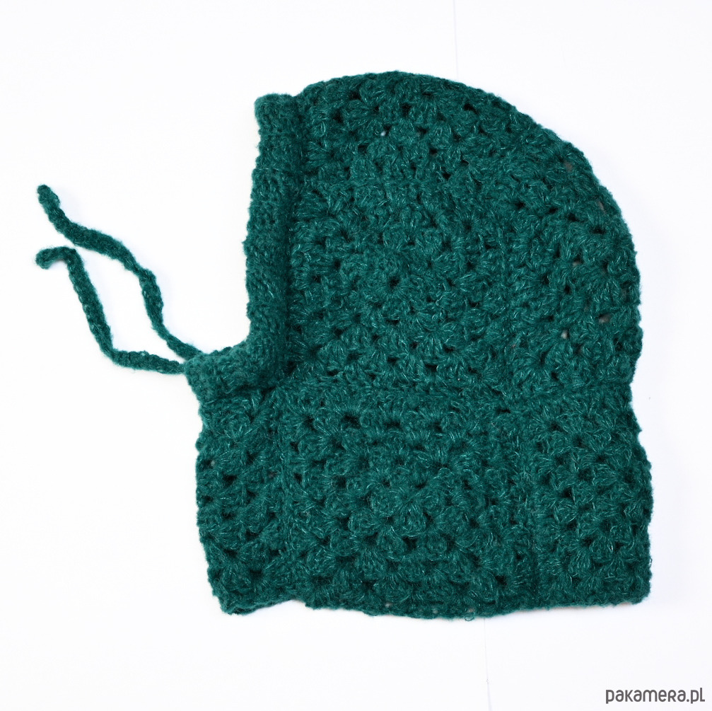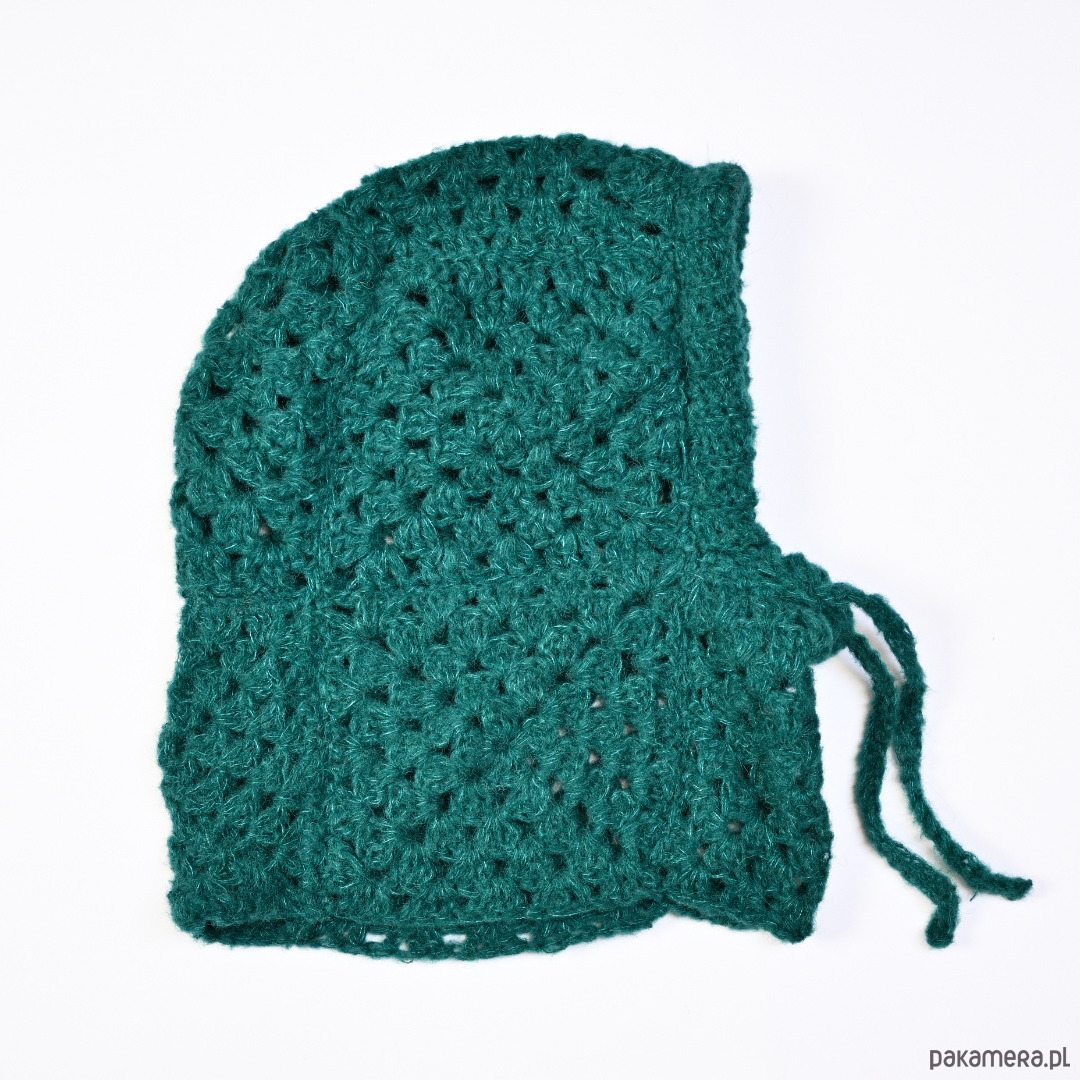Balaclava alpaka i jedwab handmade, ręcznie szydełkowana zimowa kominiarka