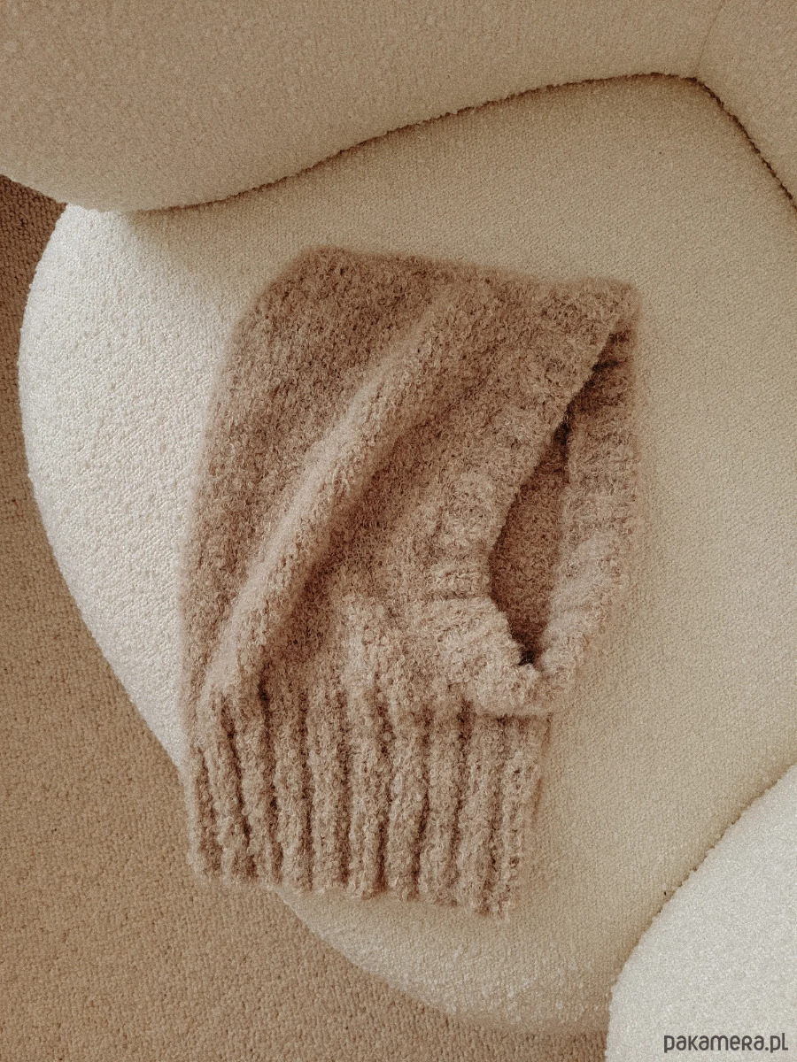 Full of Knots Balaclava to ręcznie dziergana kominiarka. Wyróżnia ją supełkowa przędza "boucle" i swobodna forma. Będzie dla Ciebie idealna jeśli nie przepadasz za czapkami. Ogrzeje i otuli Twoją głowę i szyję - nie elektryzując włosów i nie przygniatając ich.